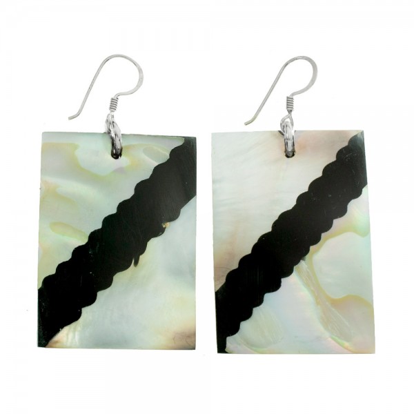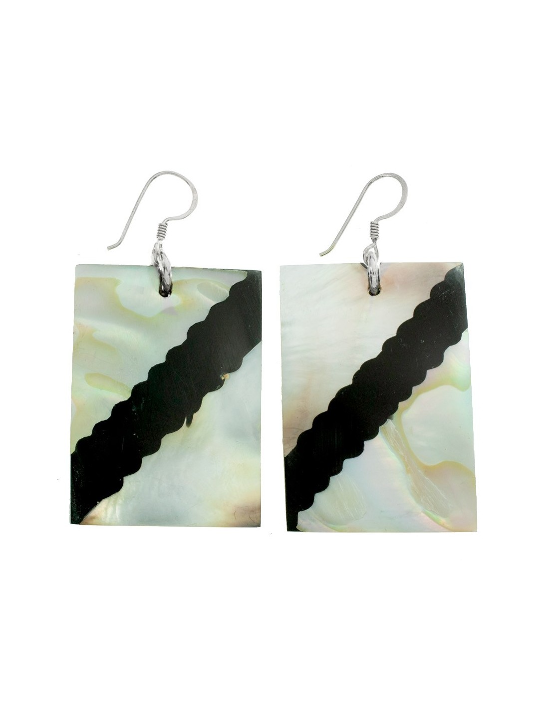 Pendientes rectángulo nácar & resina diagonal Plata de Ley 925 - Karissma