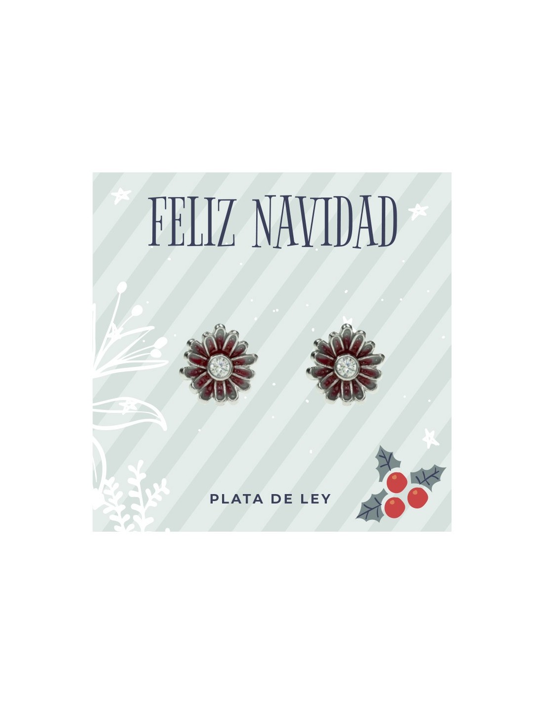 Pendientes red flower Plata de Ley, con tarjeta navideña listo para regalar.