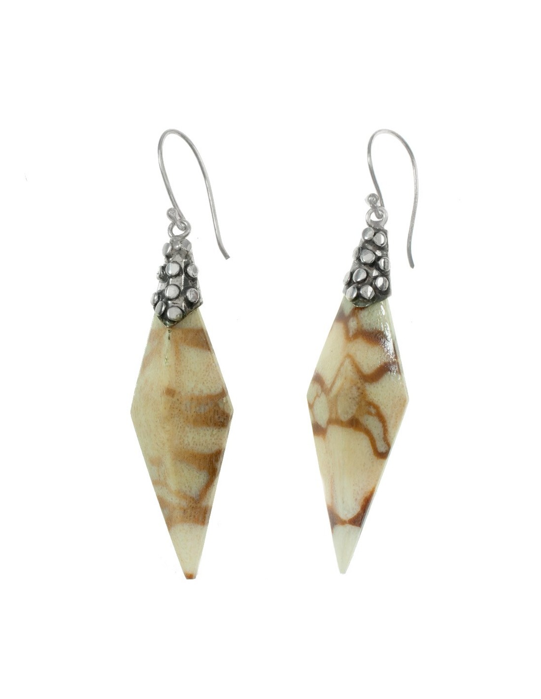 Pendientes rombo de coral blanco reconstituido con fornituras de Plata de Ley 925.
