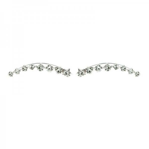 Preciosos pendientes de moda climbers con diseño de onda de circonitas blancas, fabricados en Plata de Ley 925