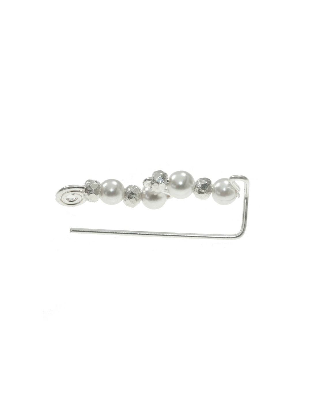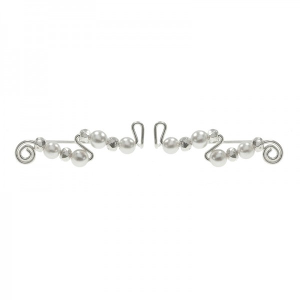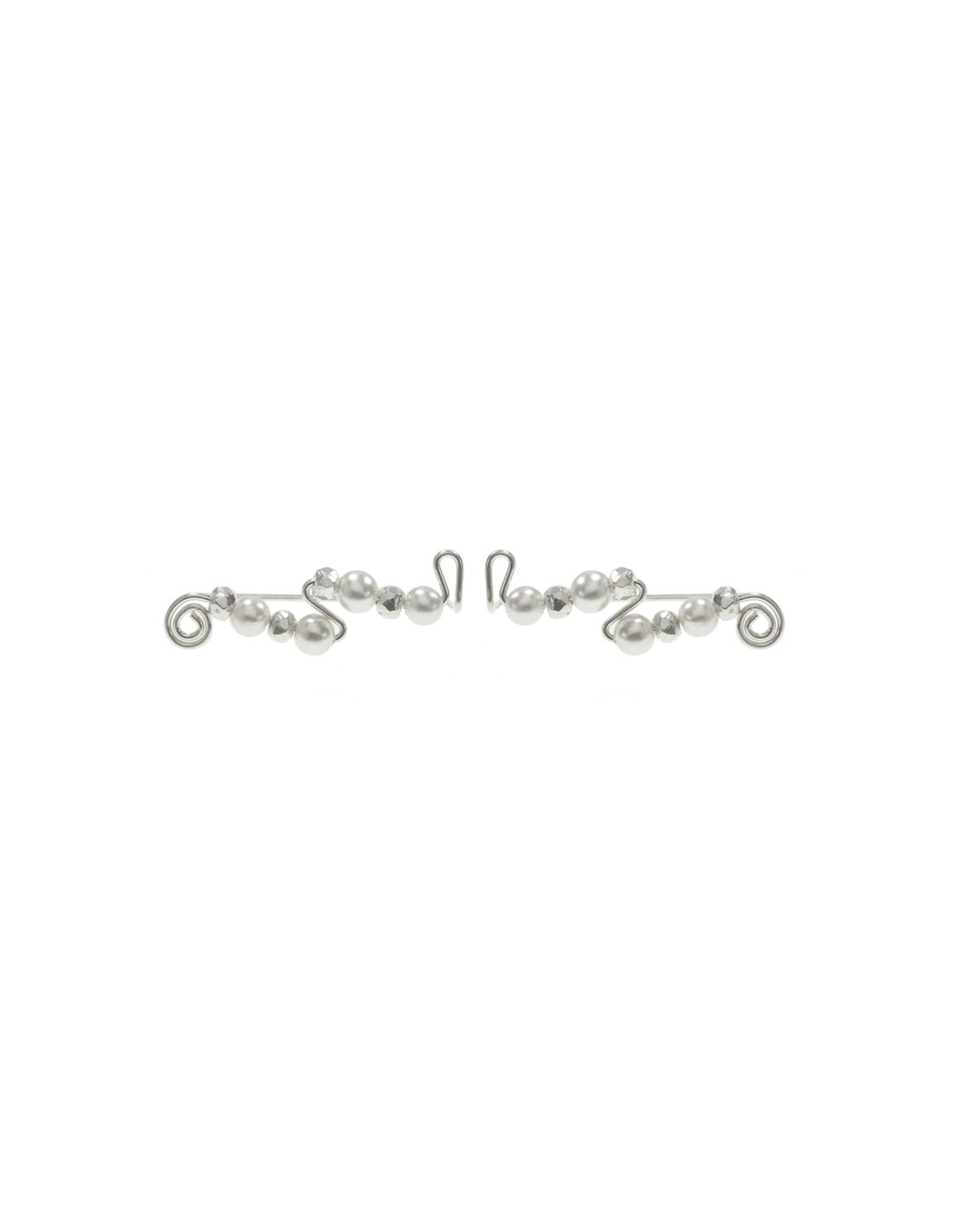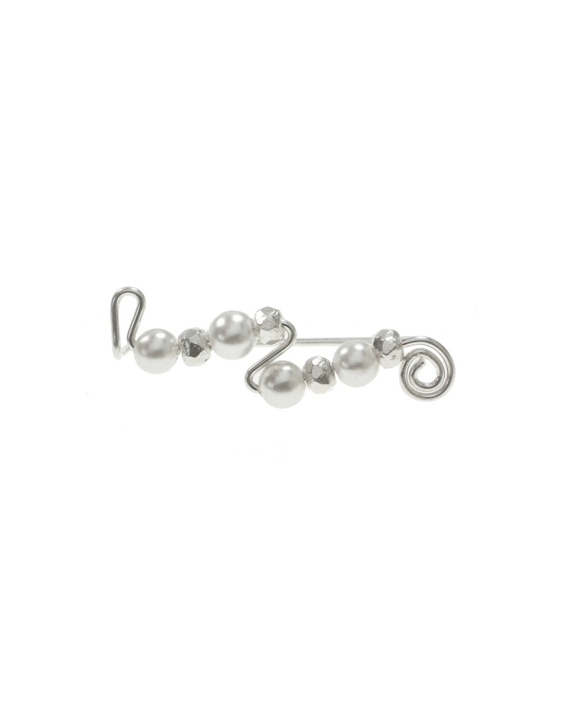 Pendientes climbers diseño con perlas y bolas martilladas rematados con espiral, fabricados en Plata de Ley 925.