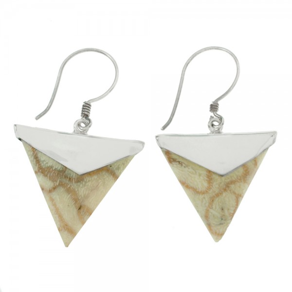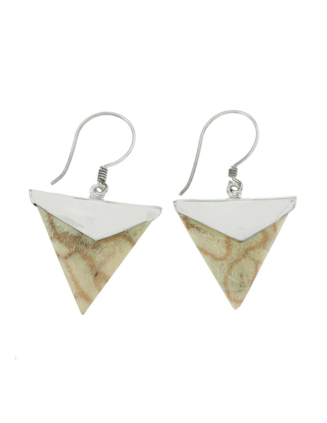 Pendientes triángulo invertido de coral blanco con fornituras de Plata de Ley 925.