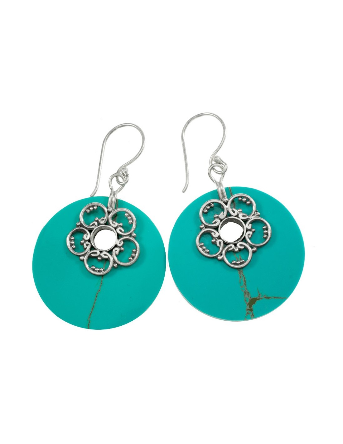 Pendientes turquesa reconstituida con flor Plata de Ley 925.