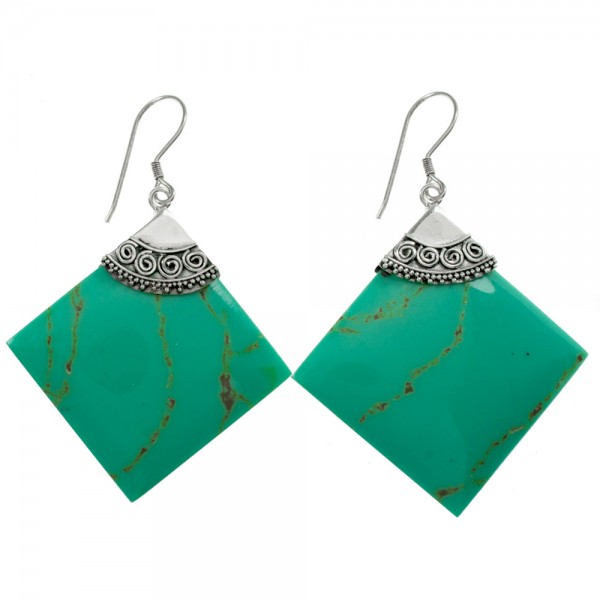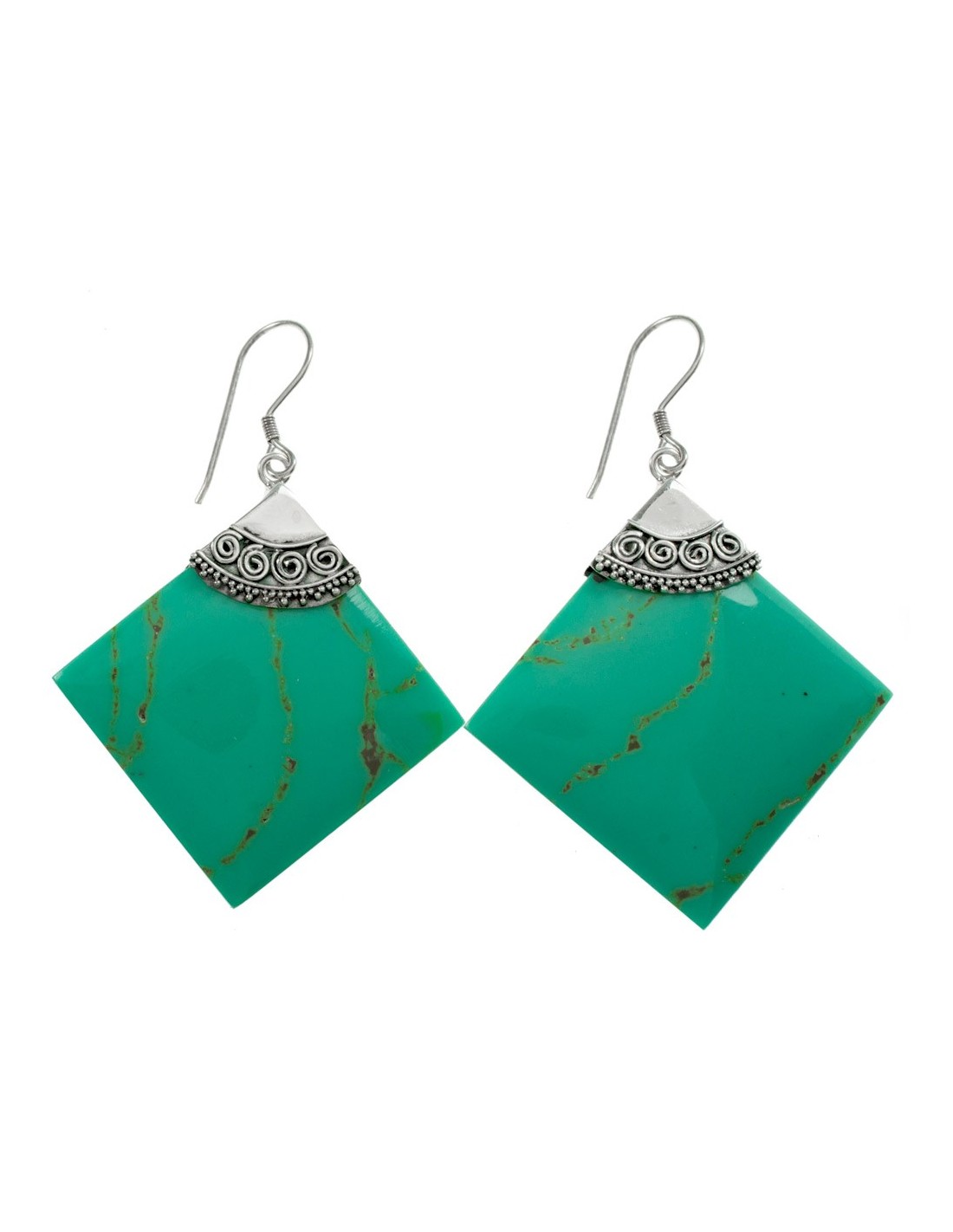 Pendientes turquesa reconstituida rombo con motivos étnicos de Plata de Ley 925.