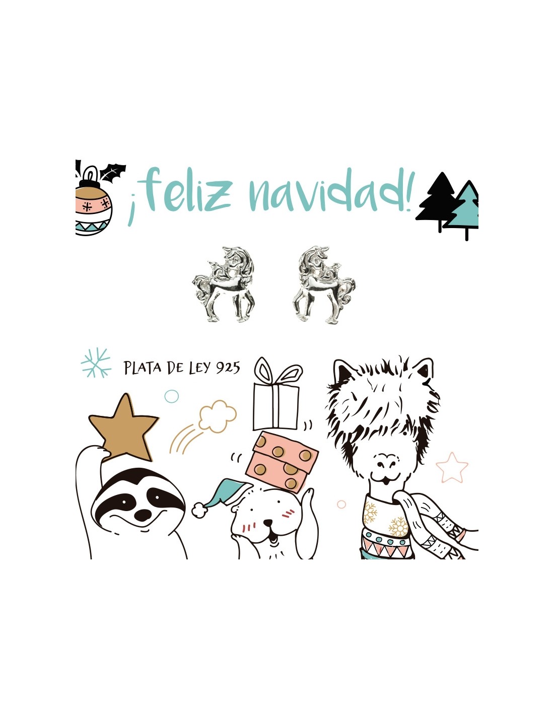 Pendientes unicornio de Plata de Ley 925 con tarjeta navideña para regalar.