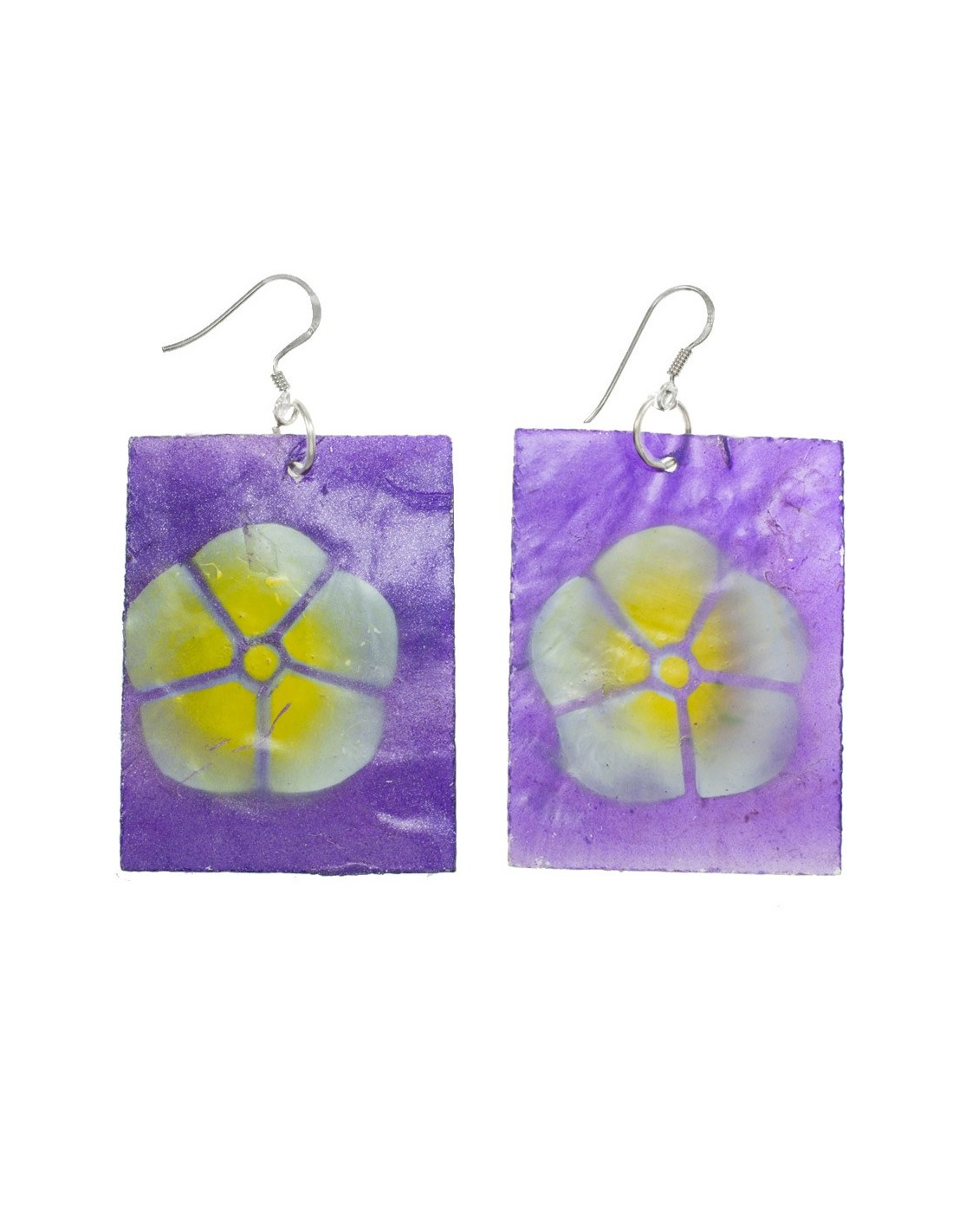 Pendientes XL resina con flor Plata de Ley 925 - Karissma