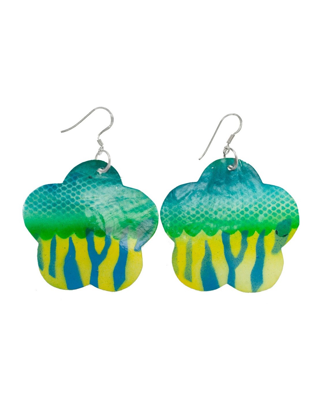 Pendientes XL resina flor zebra con fornituras de Plata de Ley 925.
