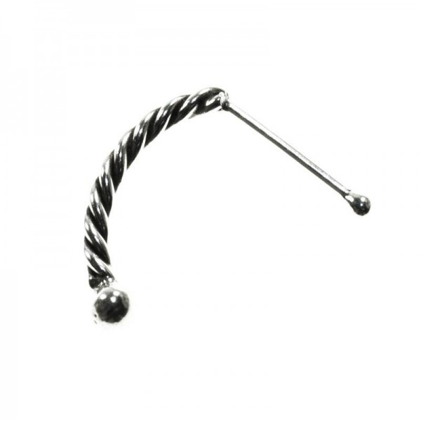 Piercing para nariz diseño cuerda balinesa oxidada, fabricado en Plata de Ley 925