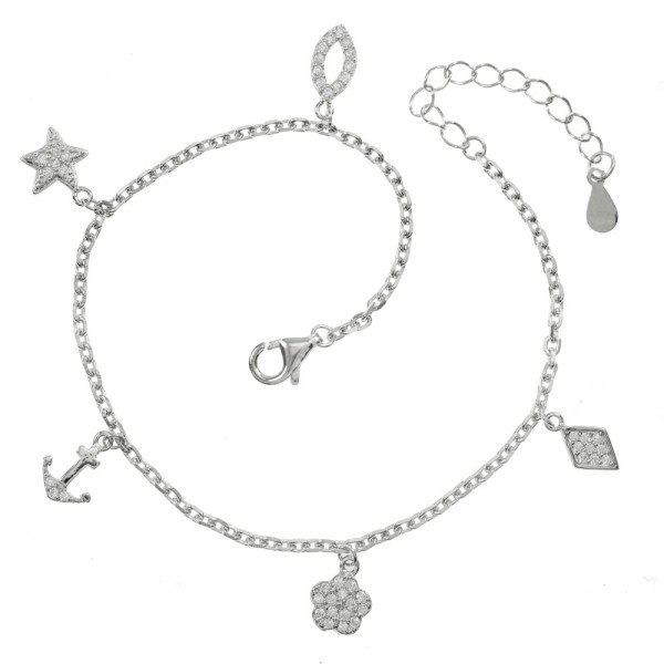Pulsera ajustable con abalorios con circonitas blancas fabricada en Plata de Ley