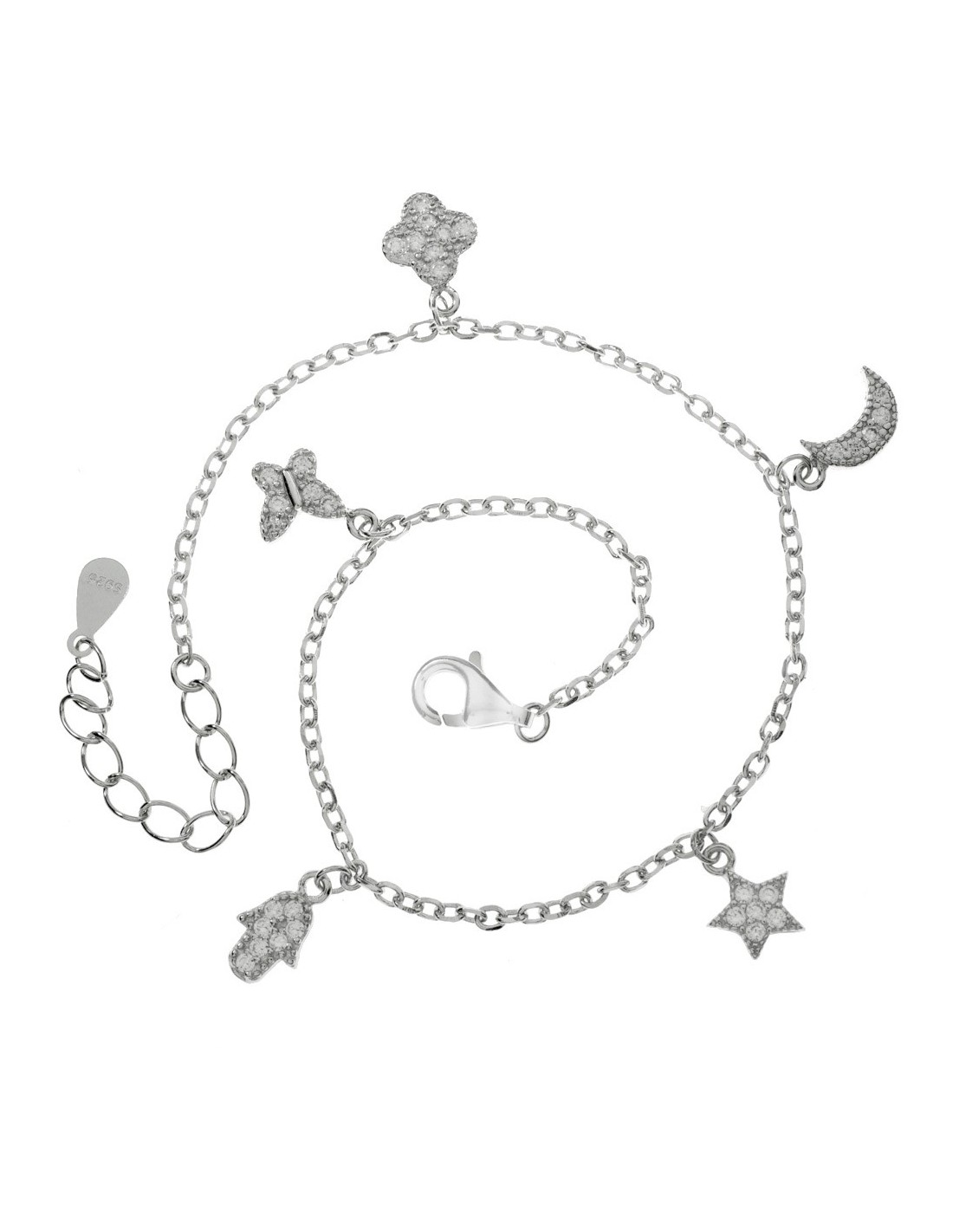 Pulsera abalorios brillo Plata de Ley