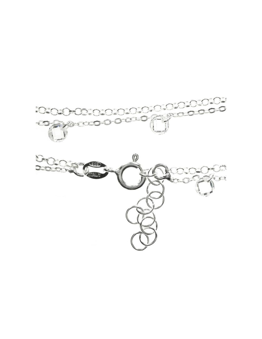 Pulsera ajustable doble con cristal blanco Plata de Ley 925