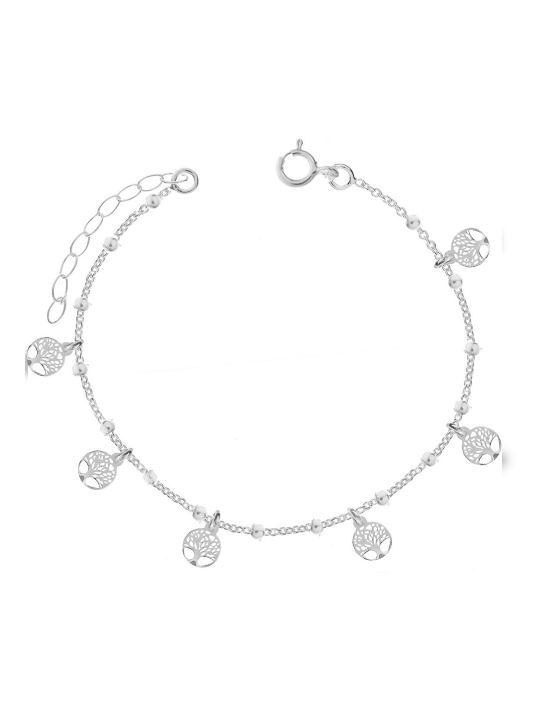 Pulsera ajustable con abalorios colgantes diseño árbol de la vida fabricada en Plata de Ley.