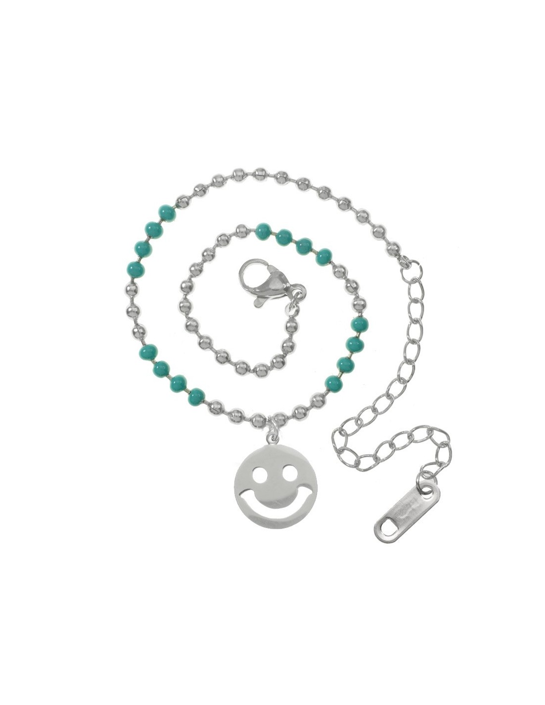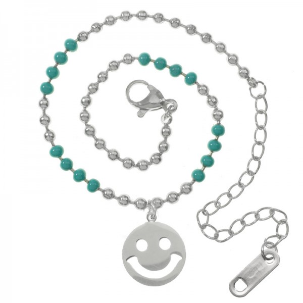 Pulsera bolitas esmalte turquesa con colgante