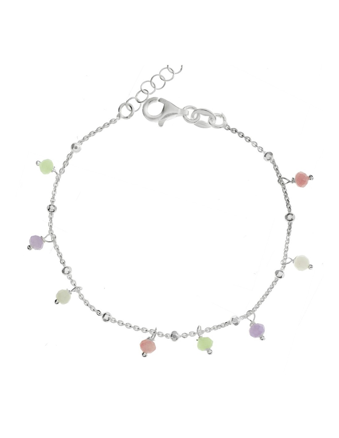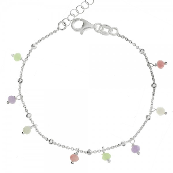 Pulsera con bolitas y cristales de colores facetados fabricada en Plata de Ley | Karissma