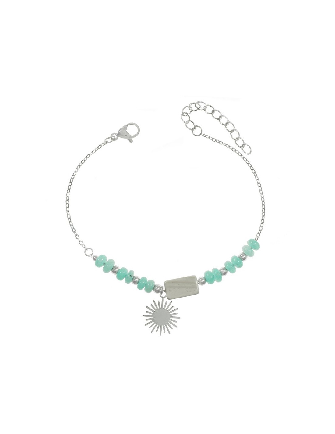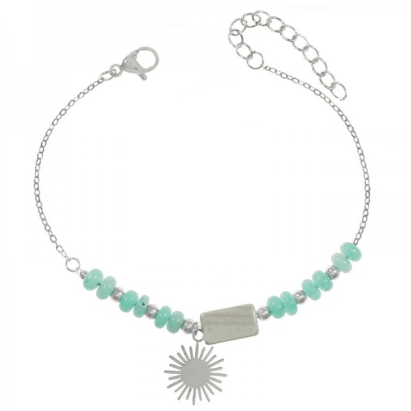 Pulsera con colgante sol y abalorios fabricada en acero