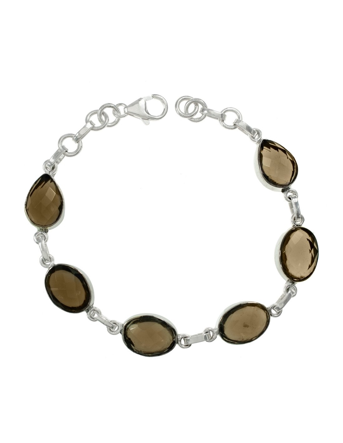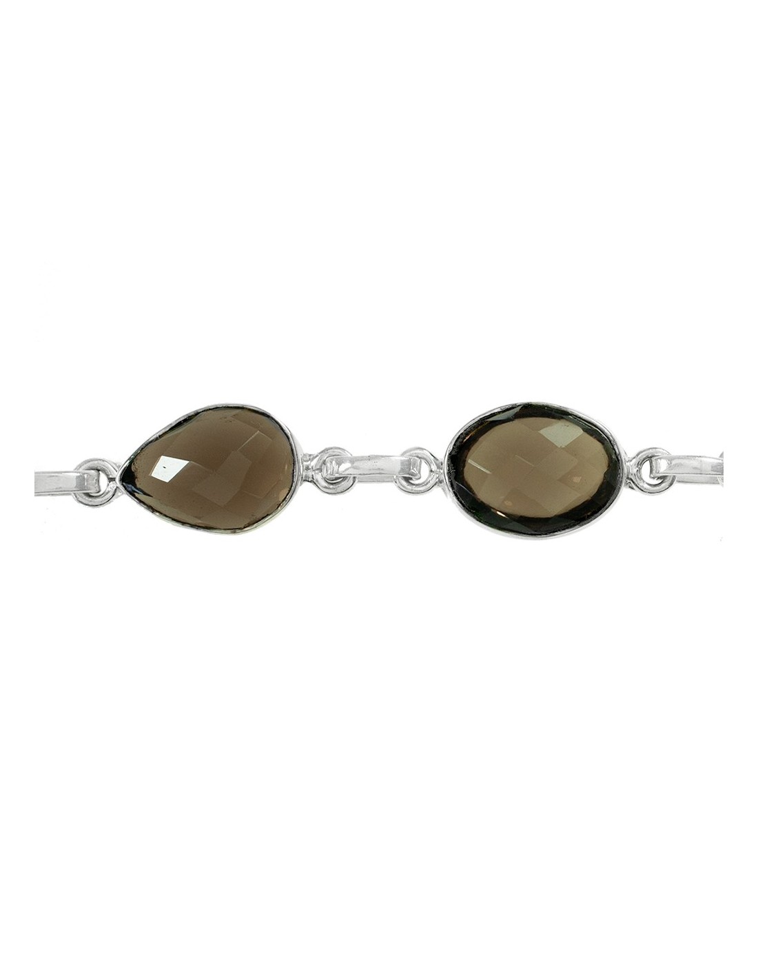 Pulsera cuarzo Fumé facetado eslabón mixto en forma de gota y oval montada en base de Plata de Ley 925