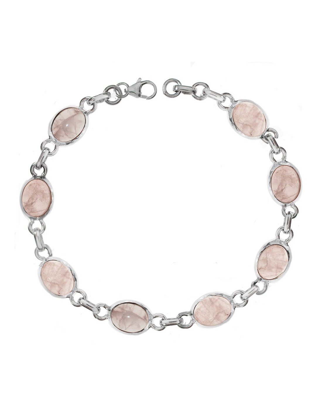 Pulsera cuarzo rosa eslabón oval Plata de Ley