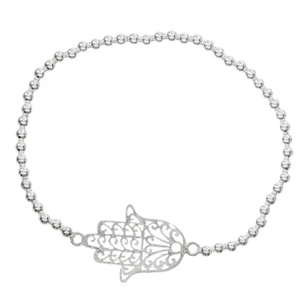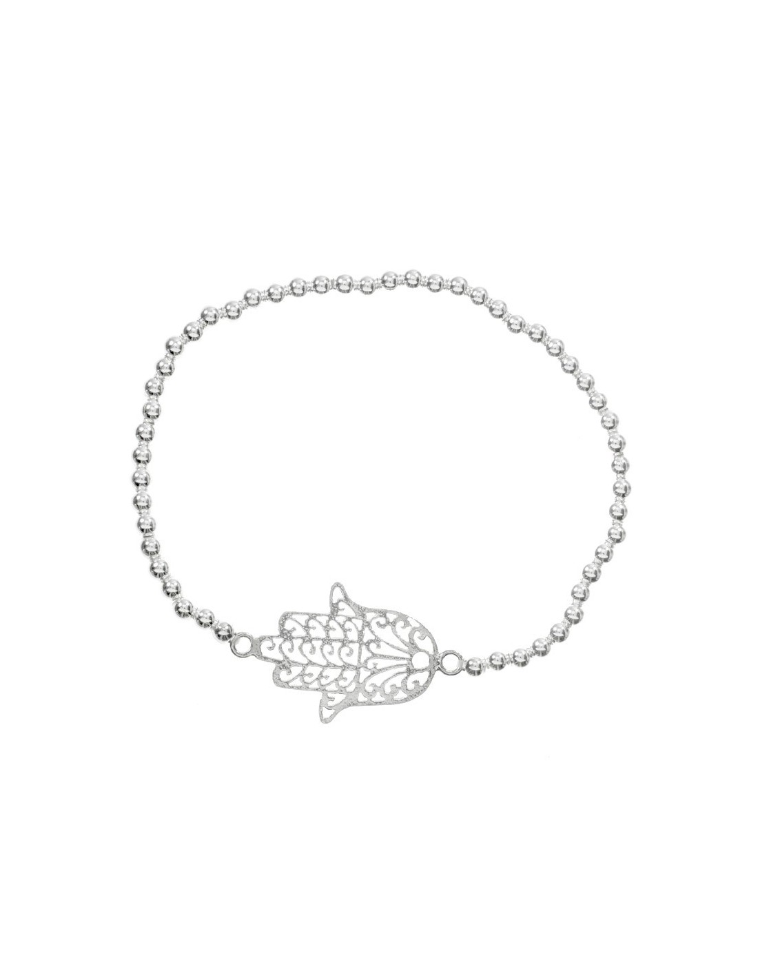 Pulsera elástica de bolitas con mano de Fátima Plata de Ley