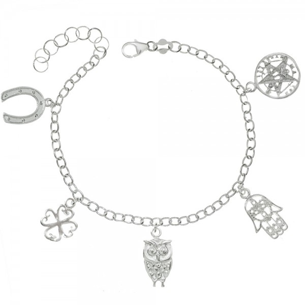 Pulsera ajustable con abalorios de la Fortuna fabricada en Plata de Ley