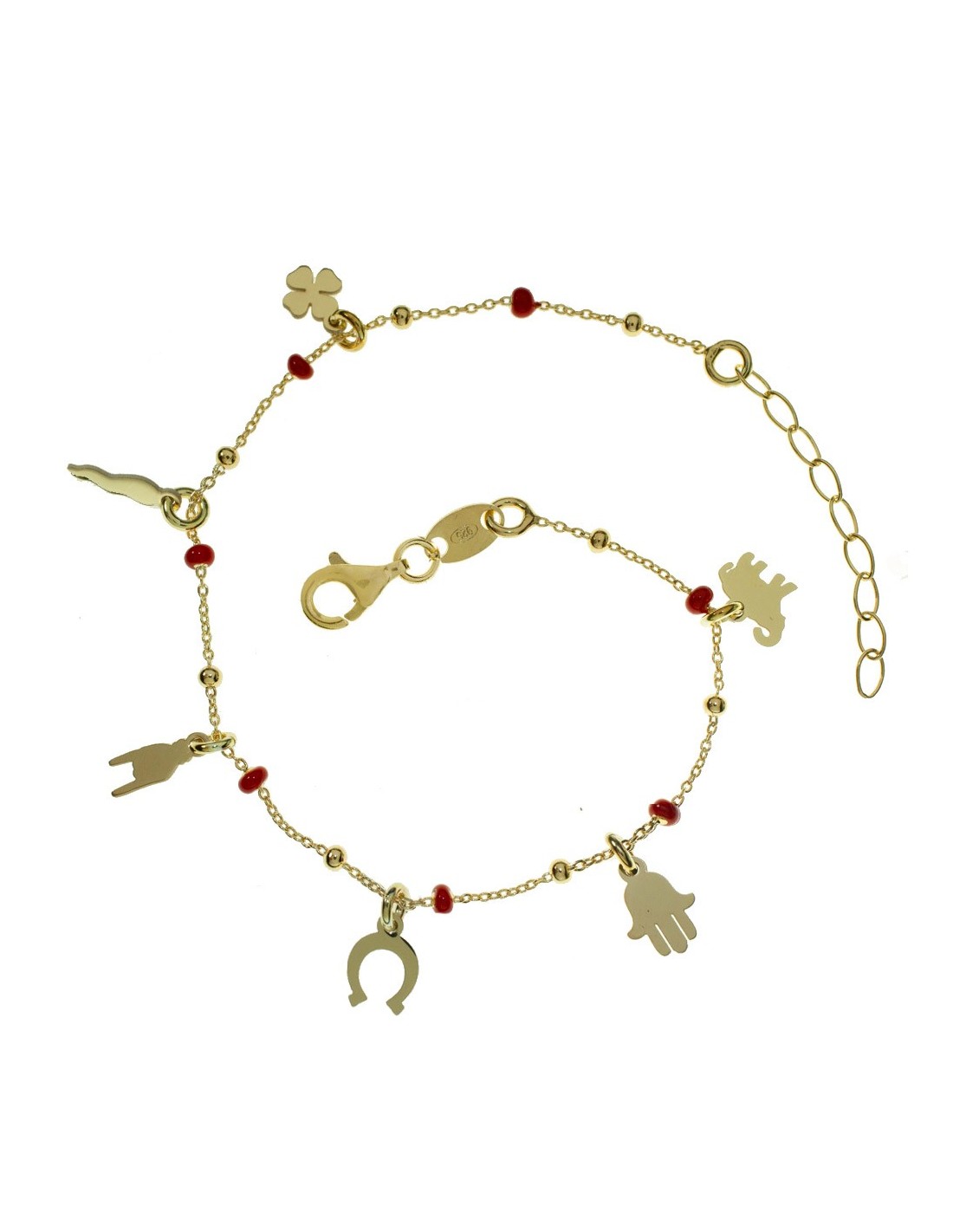 Pulsera dorada abalorios de la Suerte fabricada en Plata de Ley bañada en Oro.