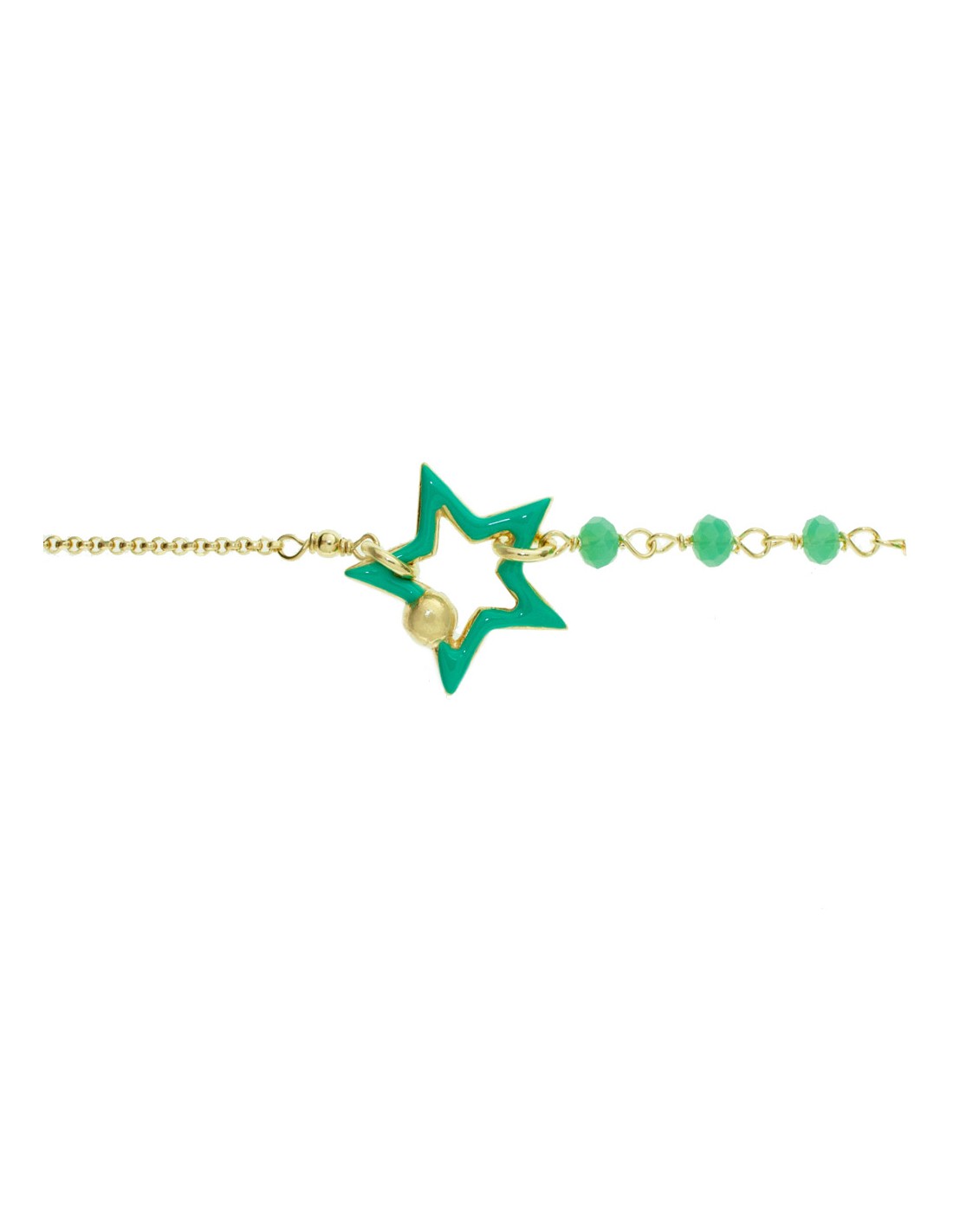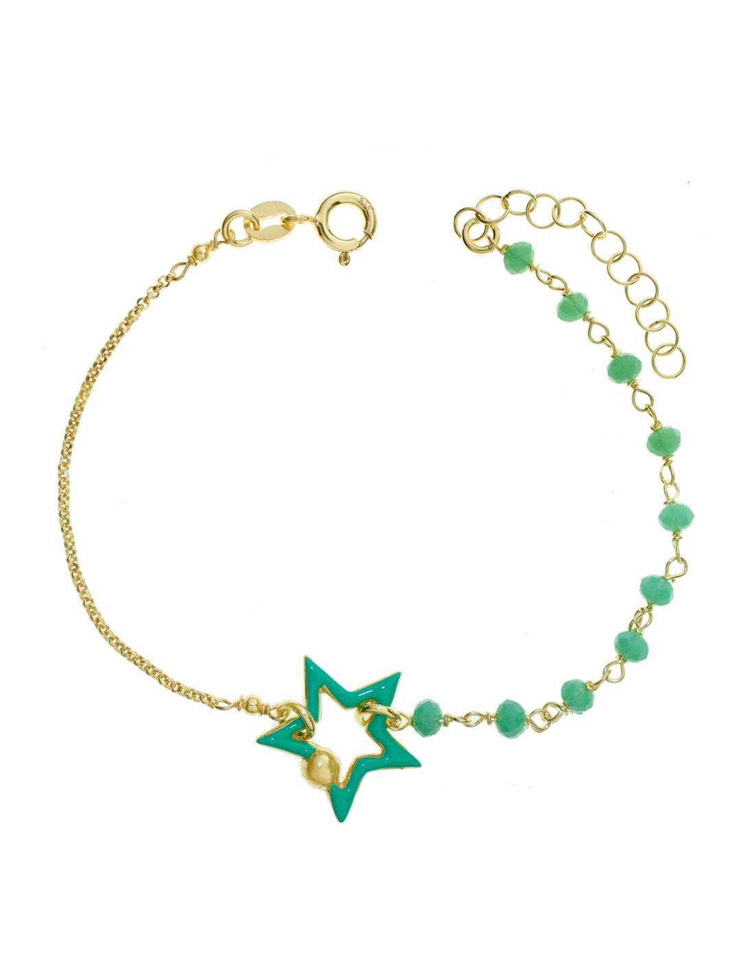 Pulsera dorada con estrella esmalte verde y cristales de colores fabricada en Plata de Ley