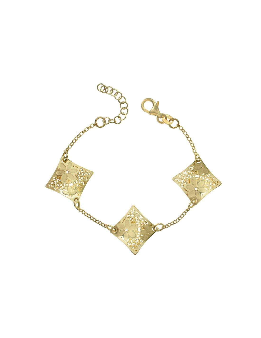 Pulsera dorada rombos calado floral Plata de Ley 925 bañada en Oro