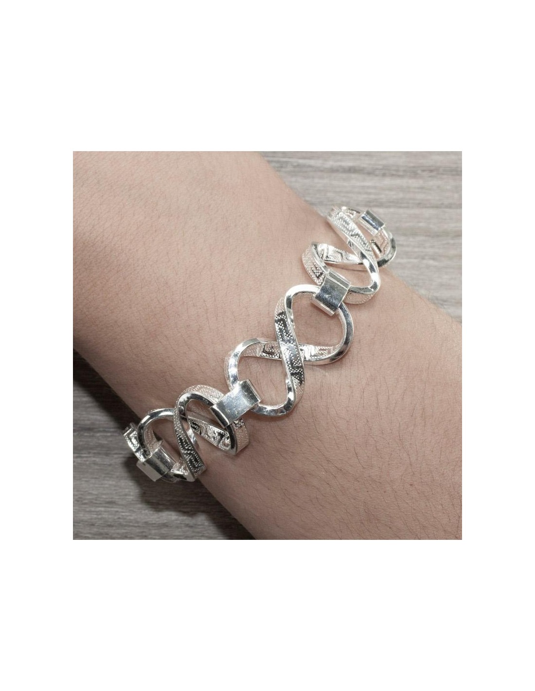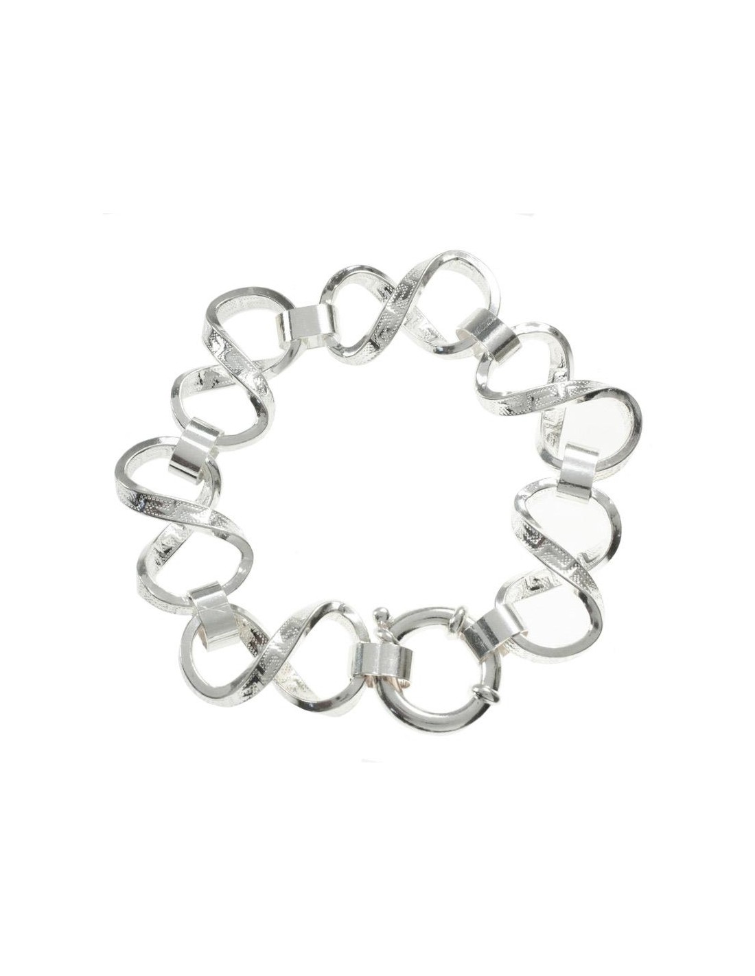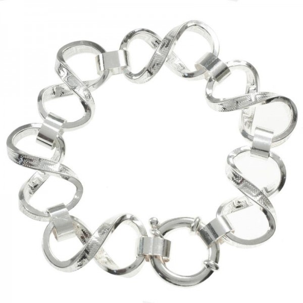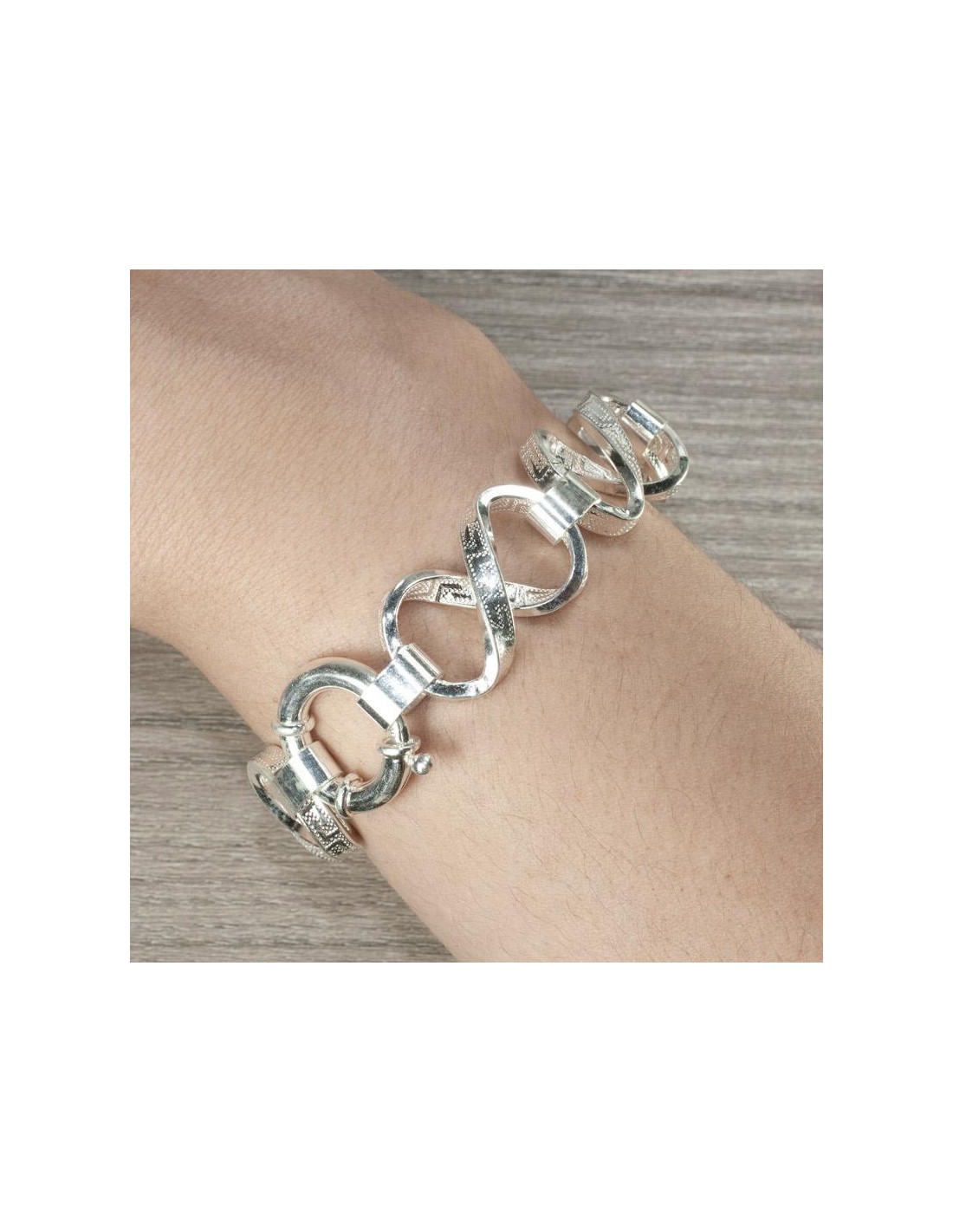Preciosa pulsera con grandes eslabones diseño infinito labrados, fabricada en Plata de Ley 925 con acabado liso.
