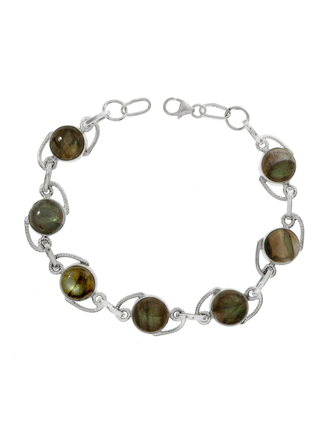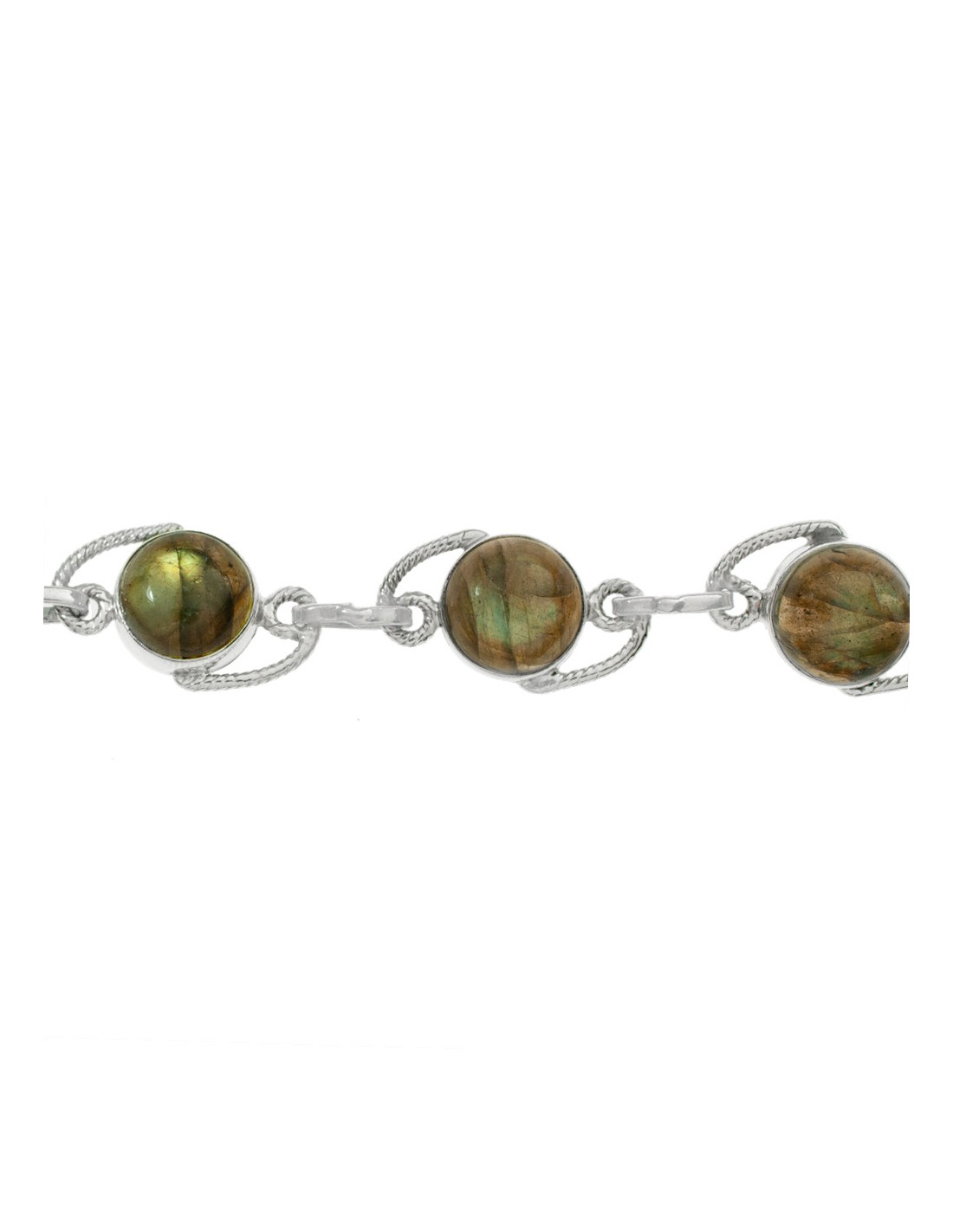 Pulsera con eslabones con piedra labradorita redonda fabricada en Plata de Ley.