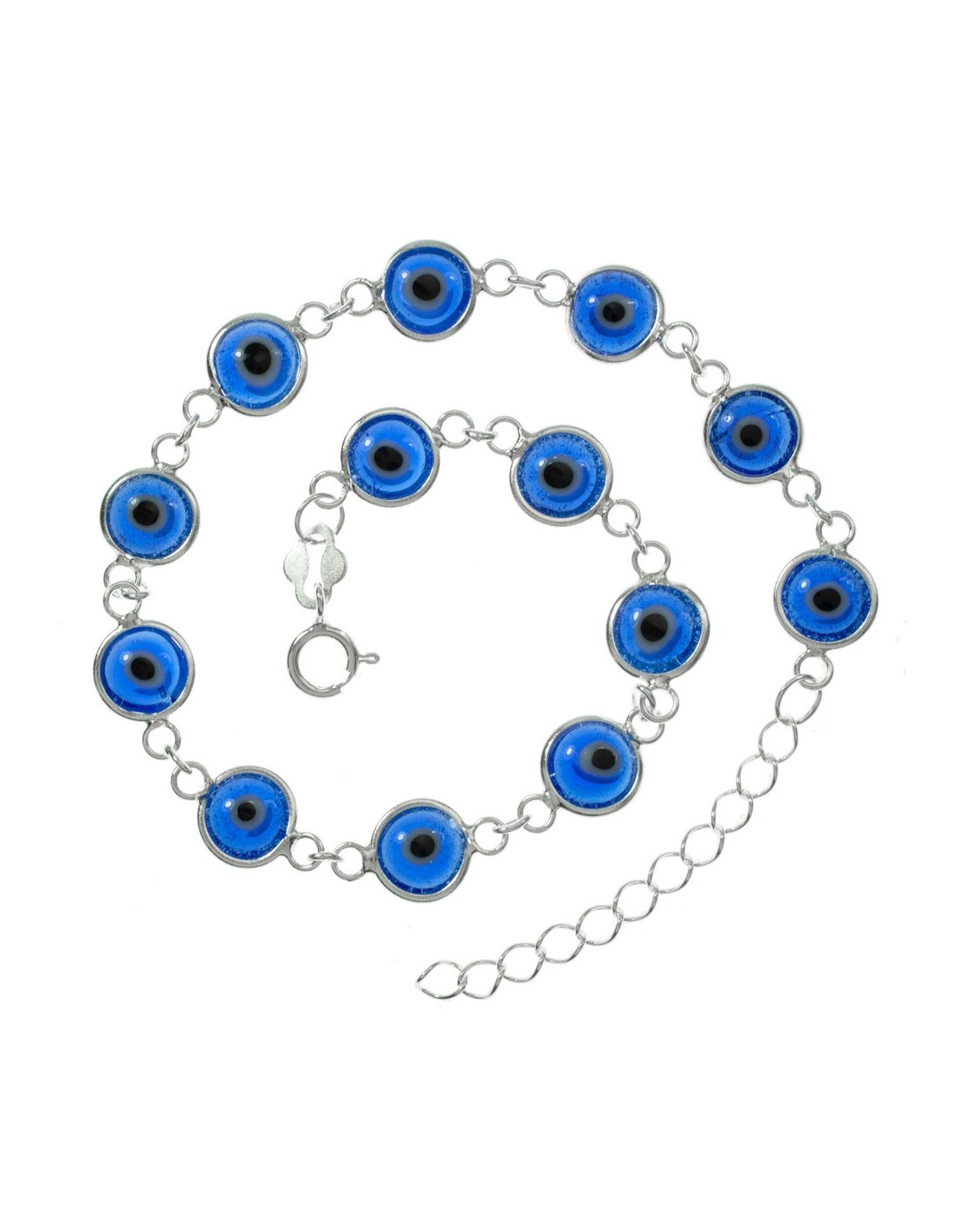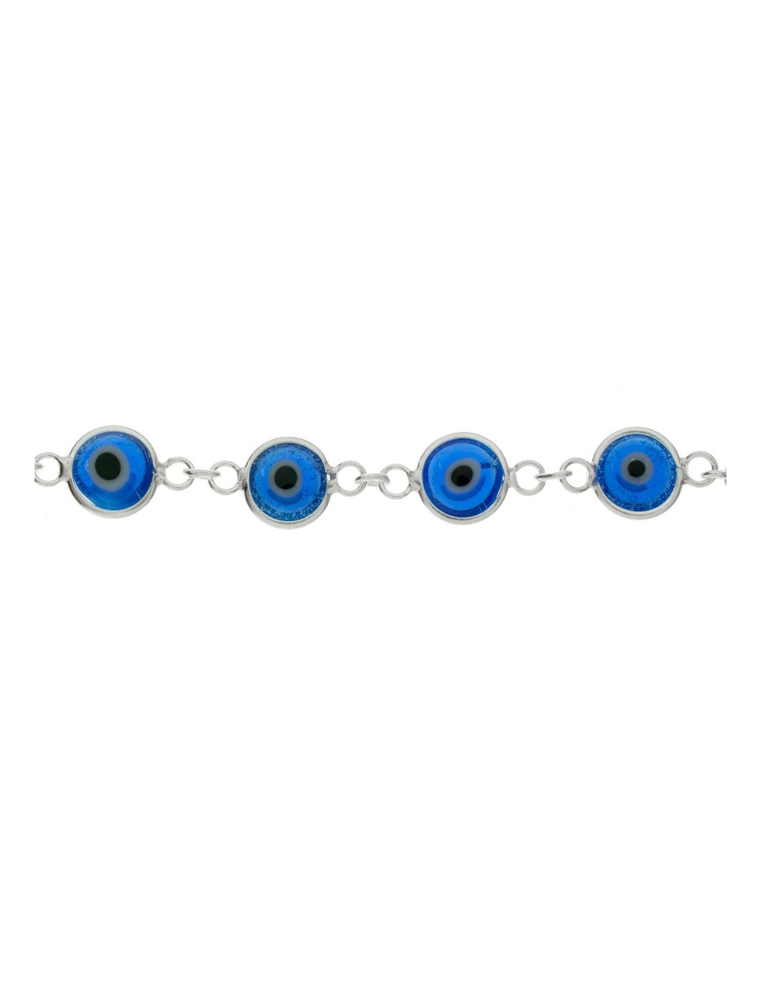 Pulsera eslabón ojo turco azul Plata de Ley