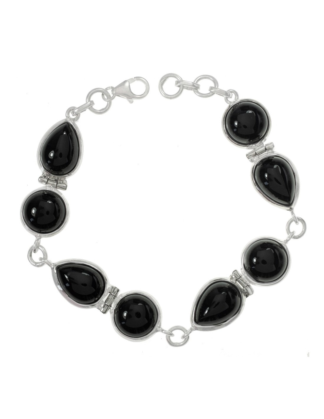 Pulsera eslabones combinados ónix Plata de Ley 925