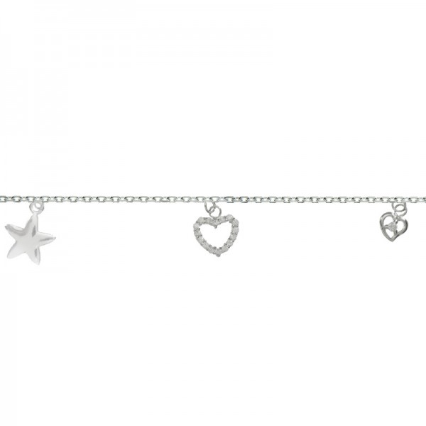 Pulsera estrella con doble corazón Plata de Ley | Karissma