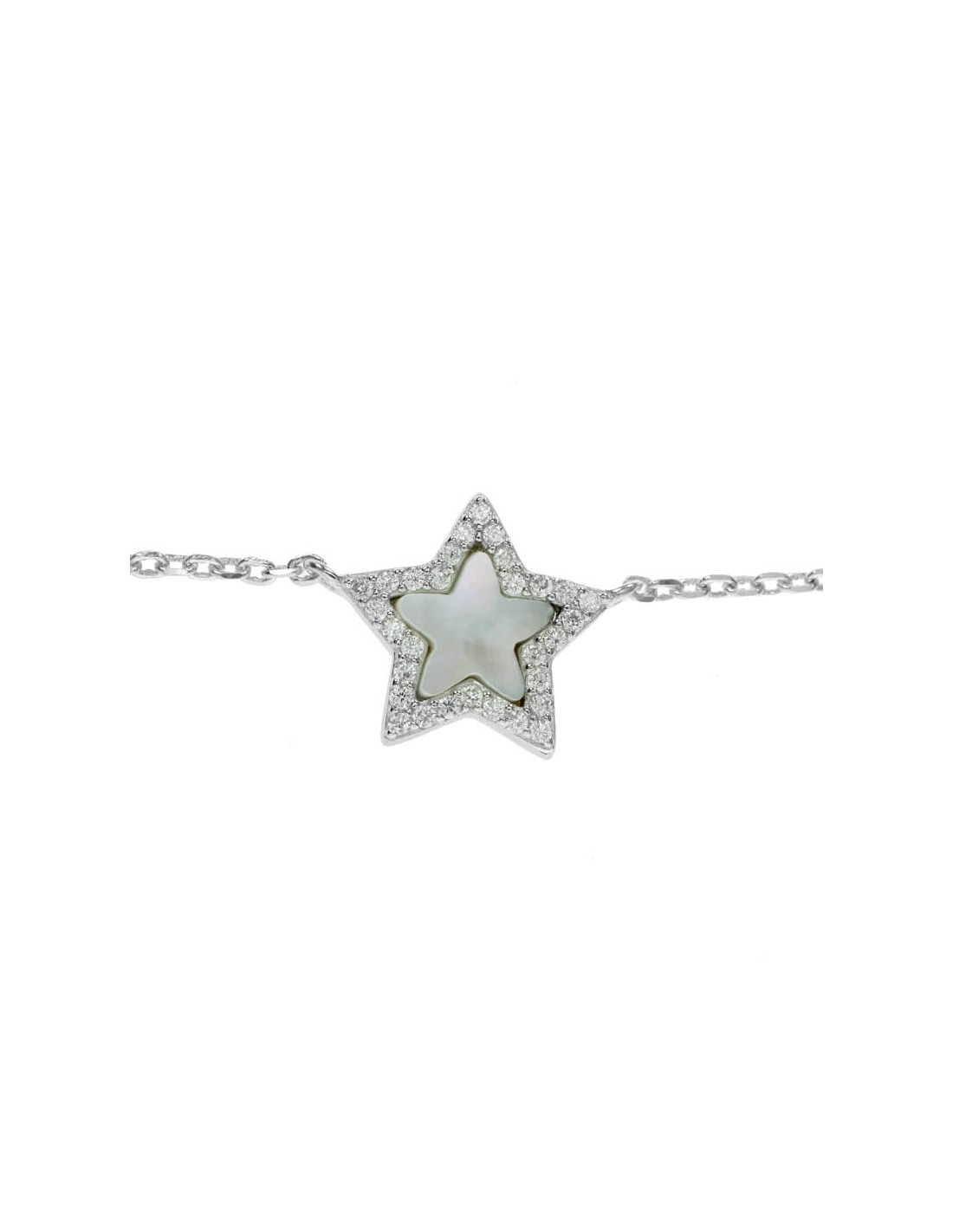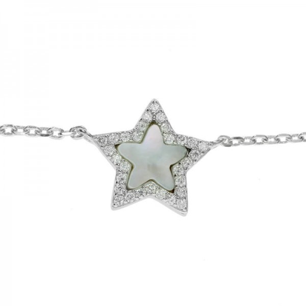 Pulsera ajustable con entrepieza estrella de nácar con borde de circonitas, fabricada en Plata de Ley 925 rodiada