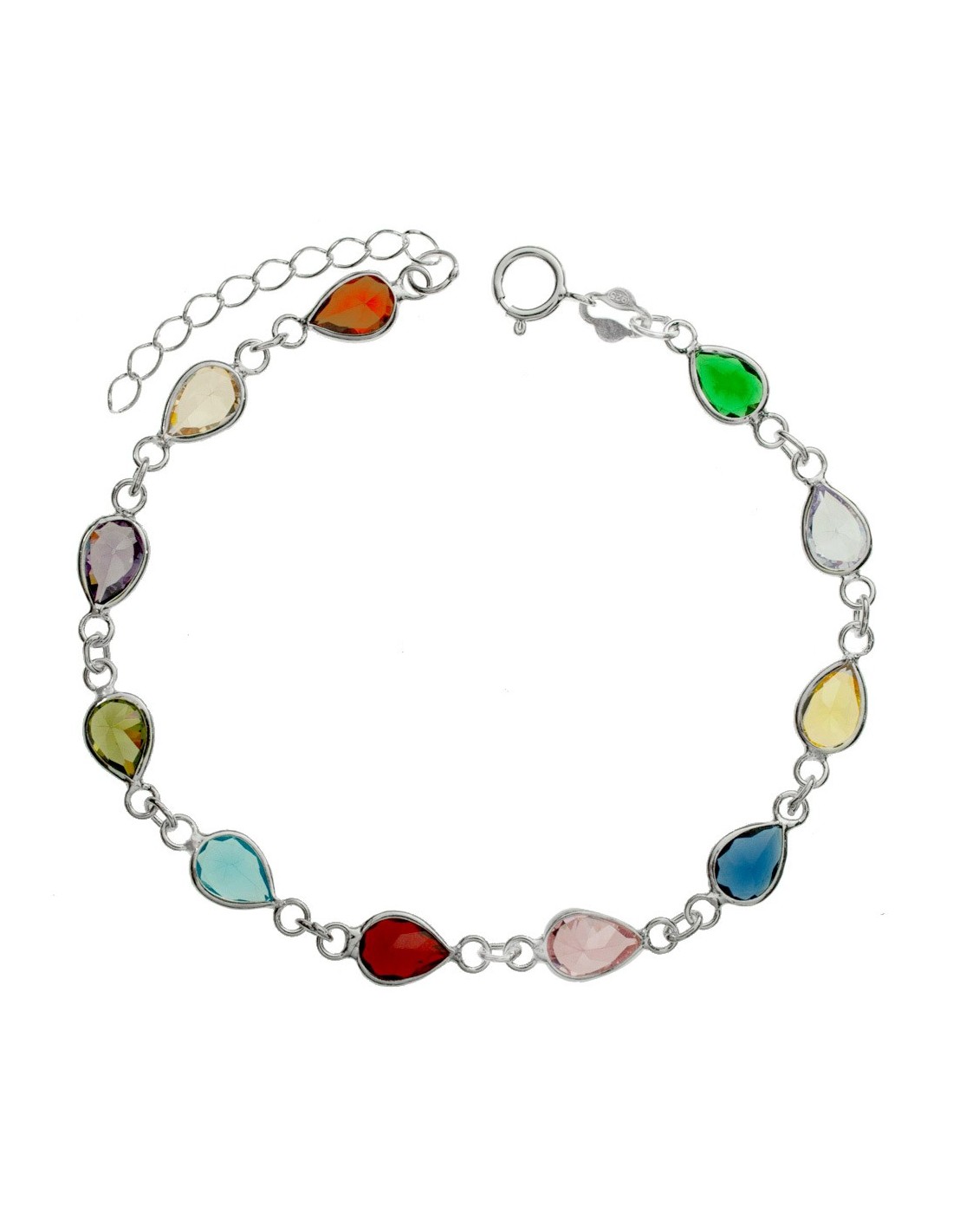 Pulsera gotas de cristales de colores Plata de Ley