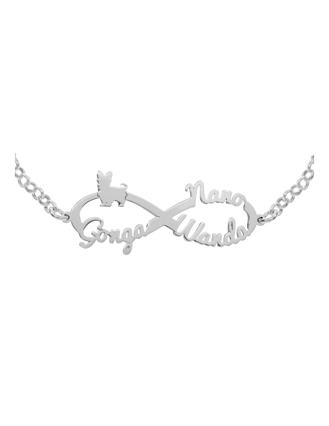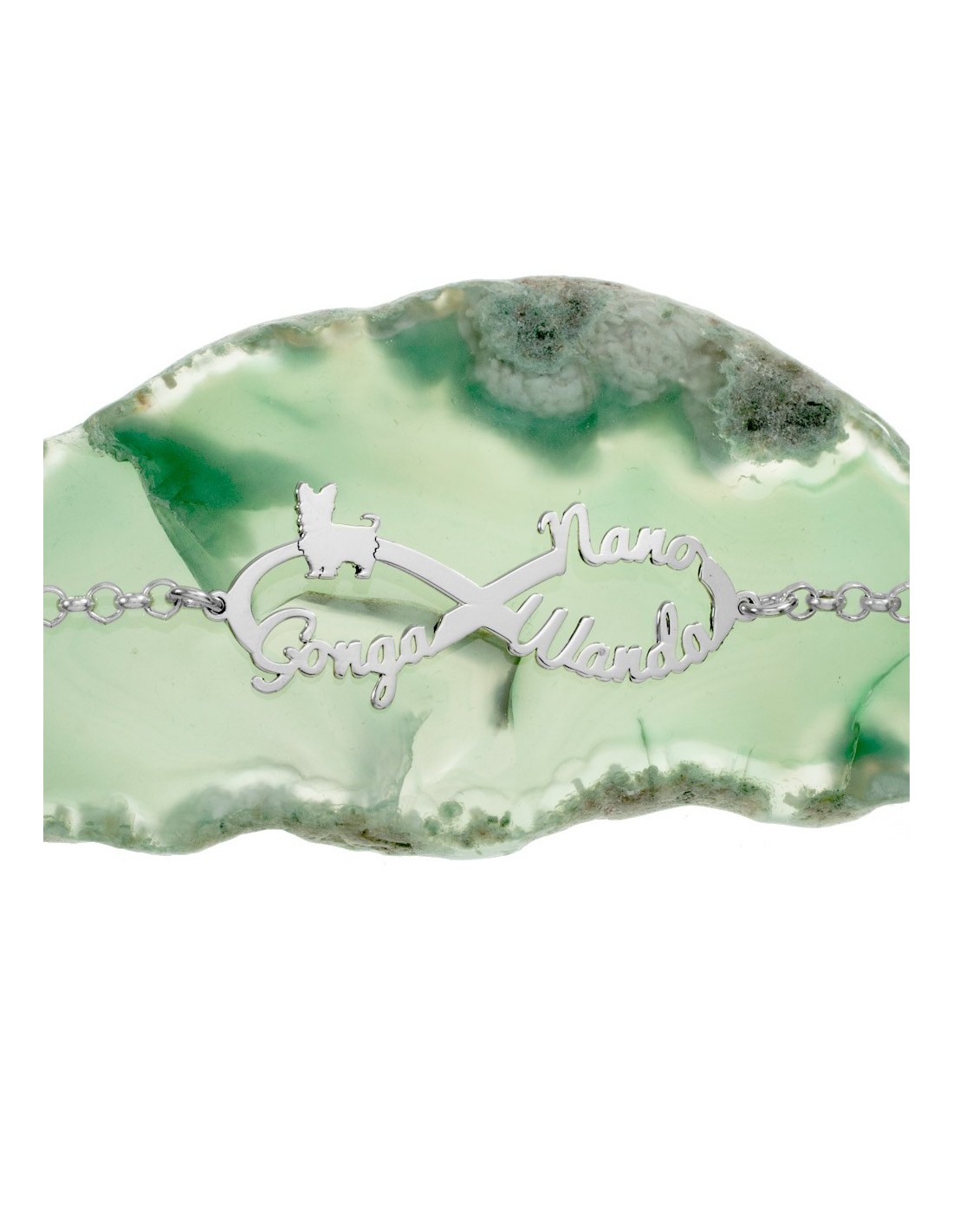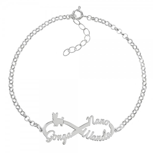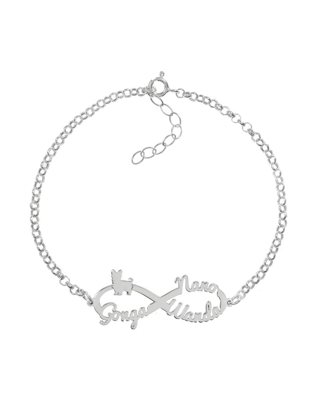 Pulsera infinito 1-3 nombres de mascota personalizados con detalle de perro, hecha en Plata de Ley con corte láser.