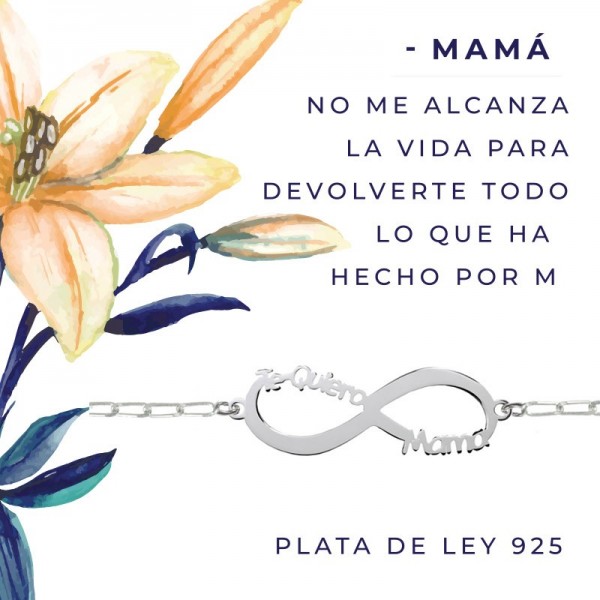 Pulsera infinito Te quiero Mamá Plata de Ley 925
