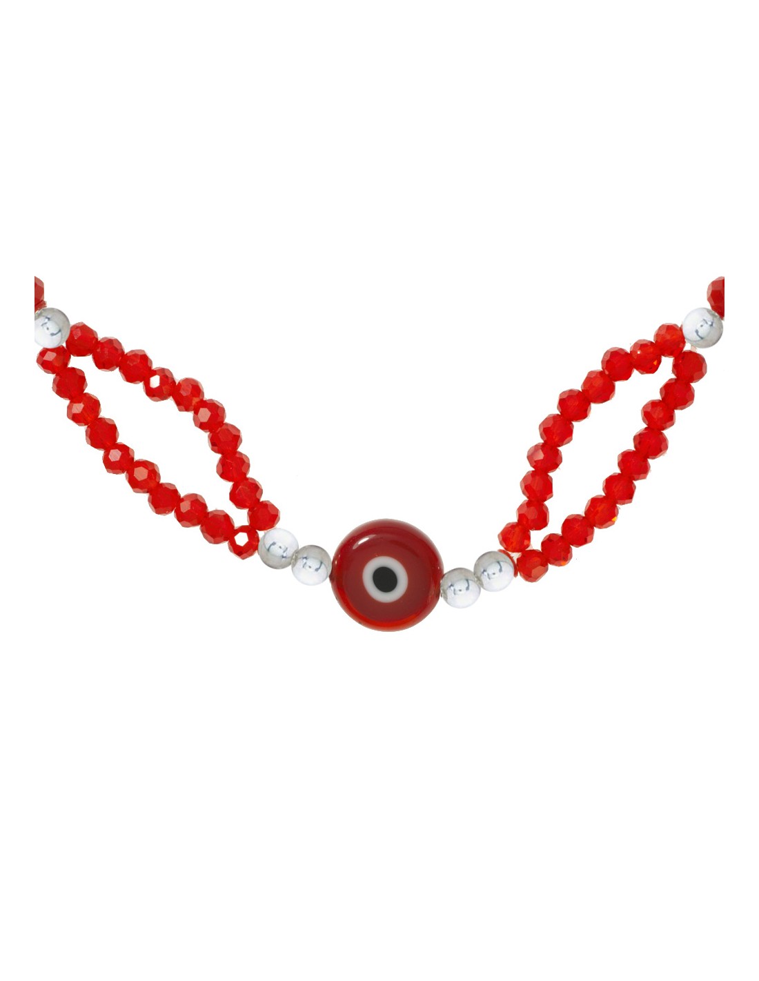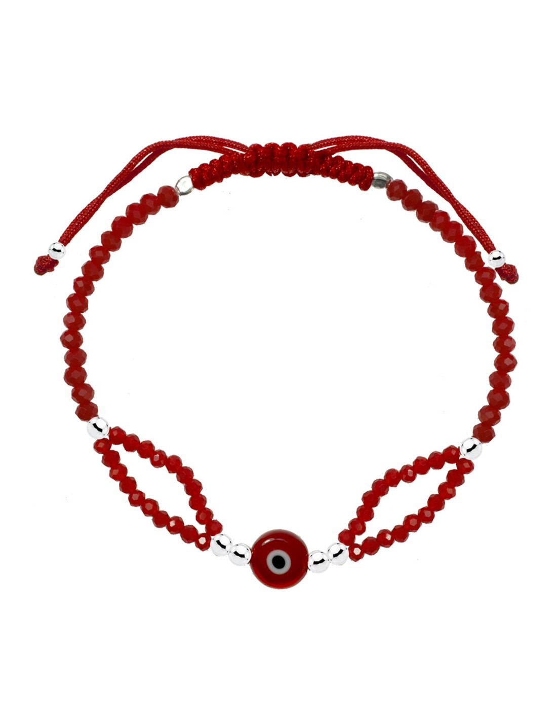 Pulsera macramé con ojo turco y cristales rojos Plata de Ley