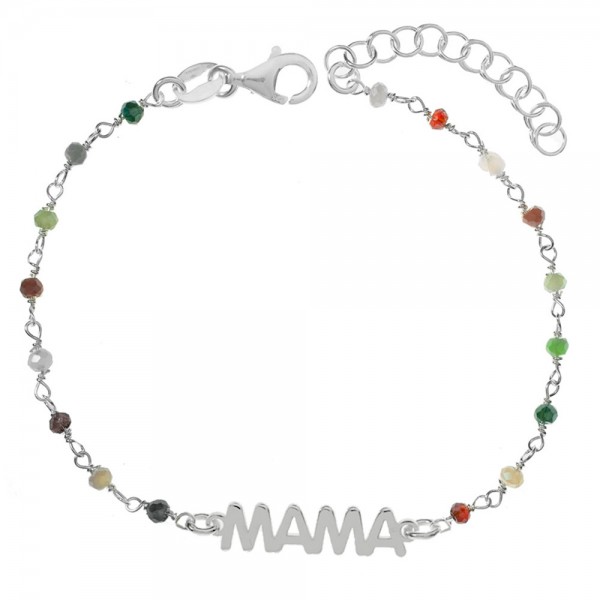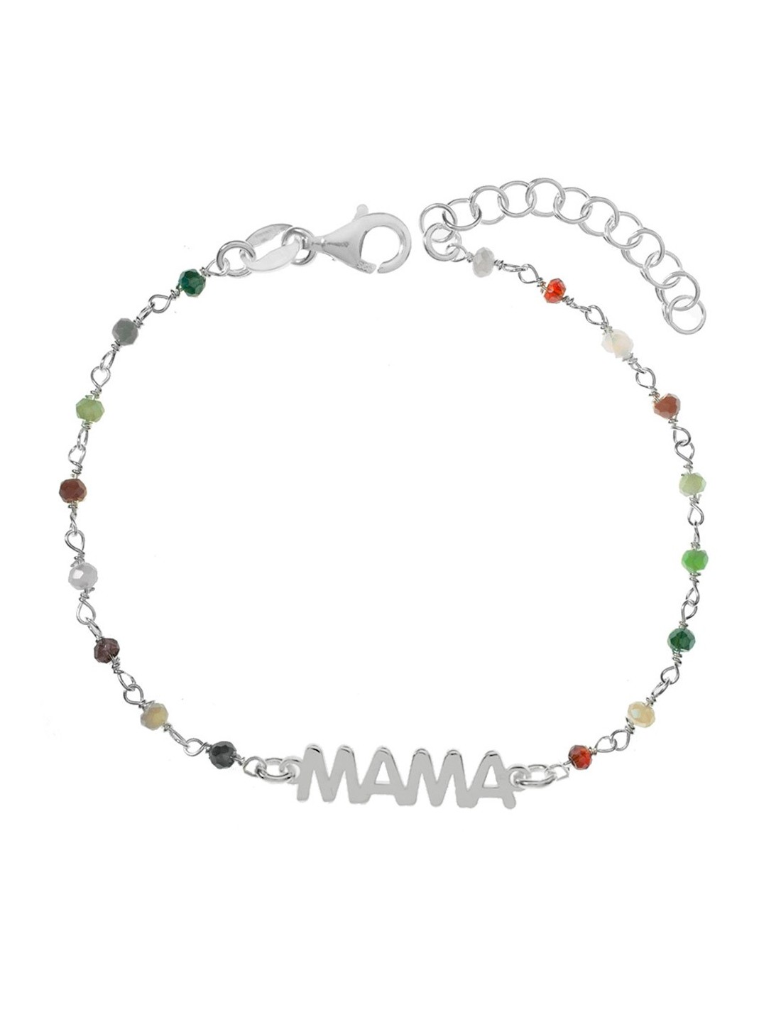 Pulsera ajustable Mamá con cristales de colores fabricada en Plata de Ley