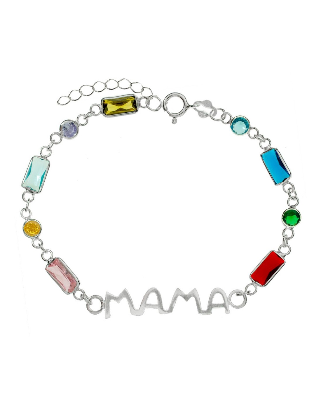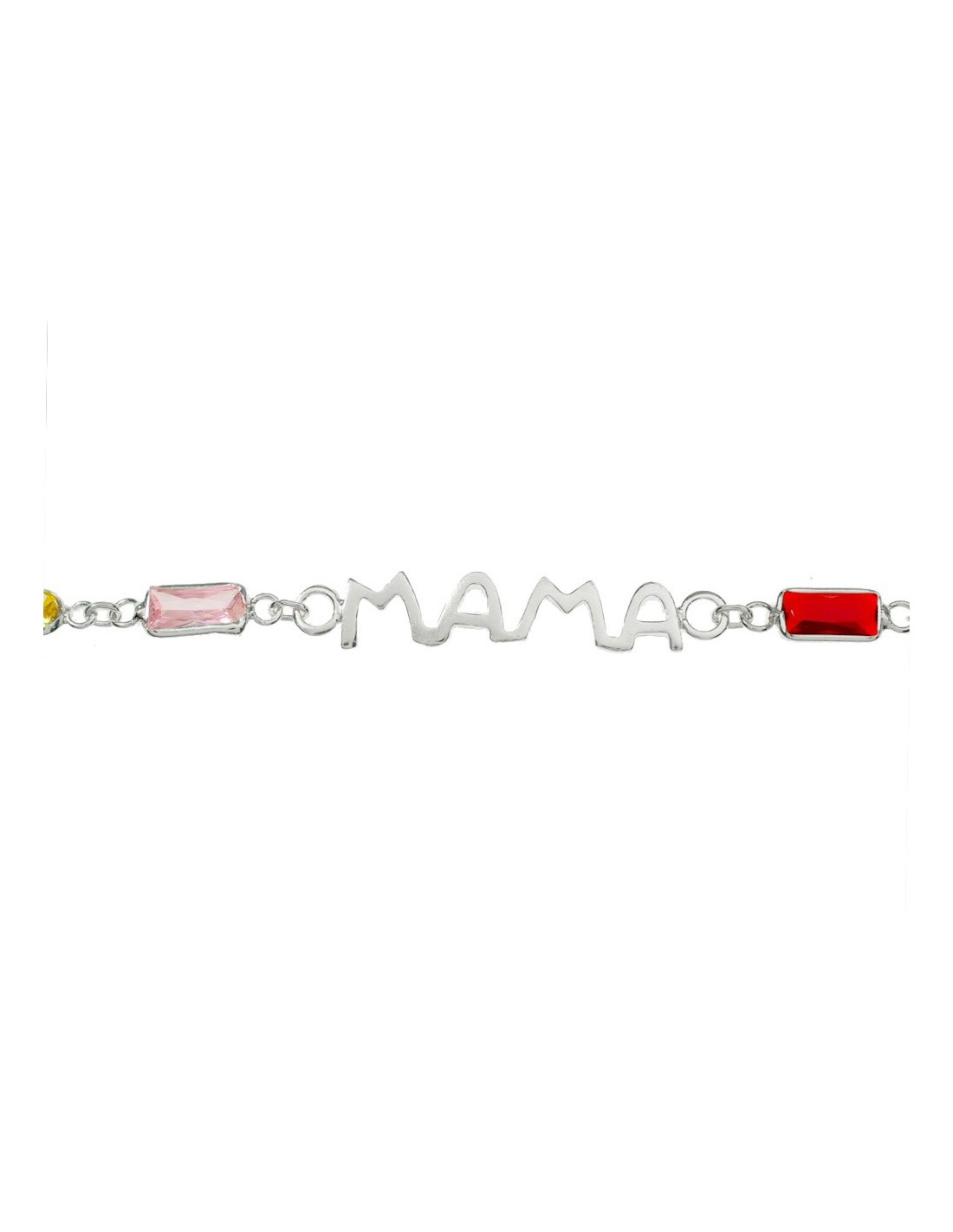 Pulsera Mamá con cristales de colores talla rectangular y redonda montados en Plata de Ley