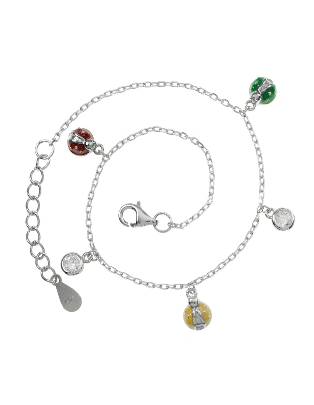 Pulsera mariquitas de colores Plata de Ley 925 rodiada