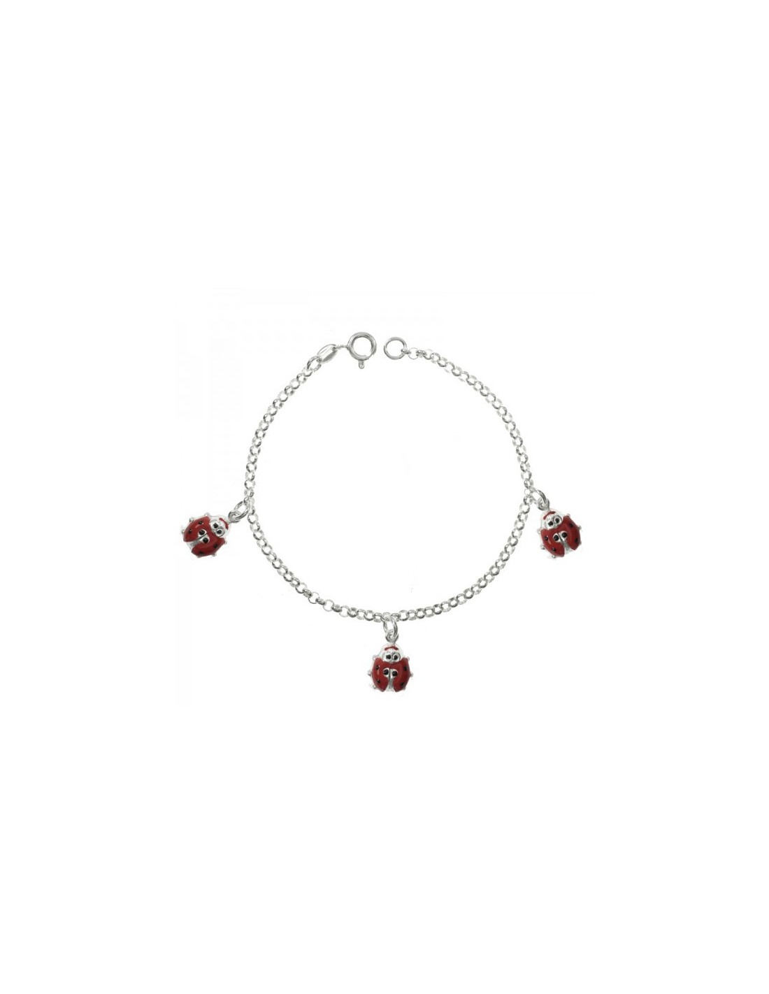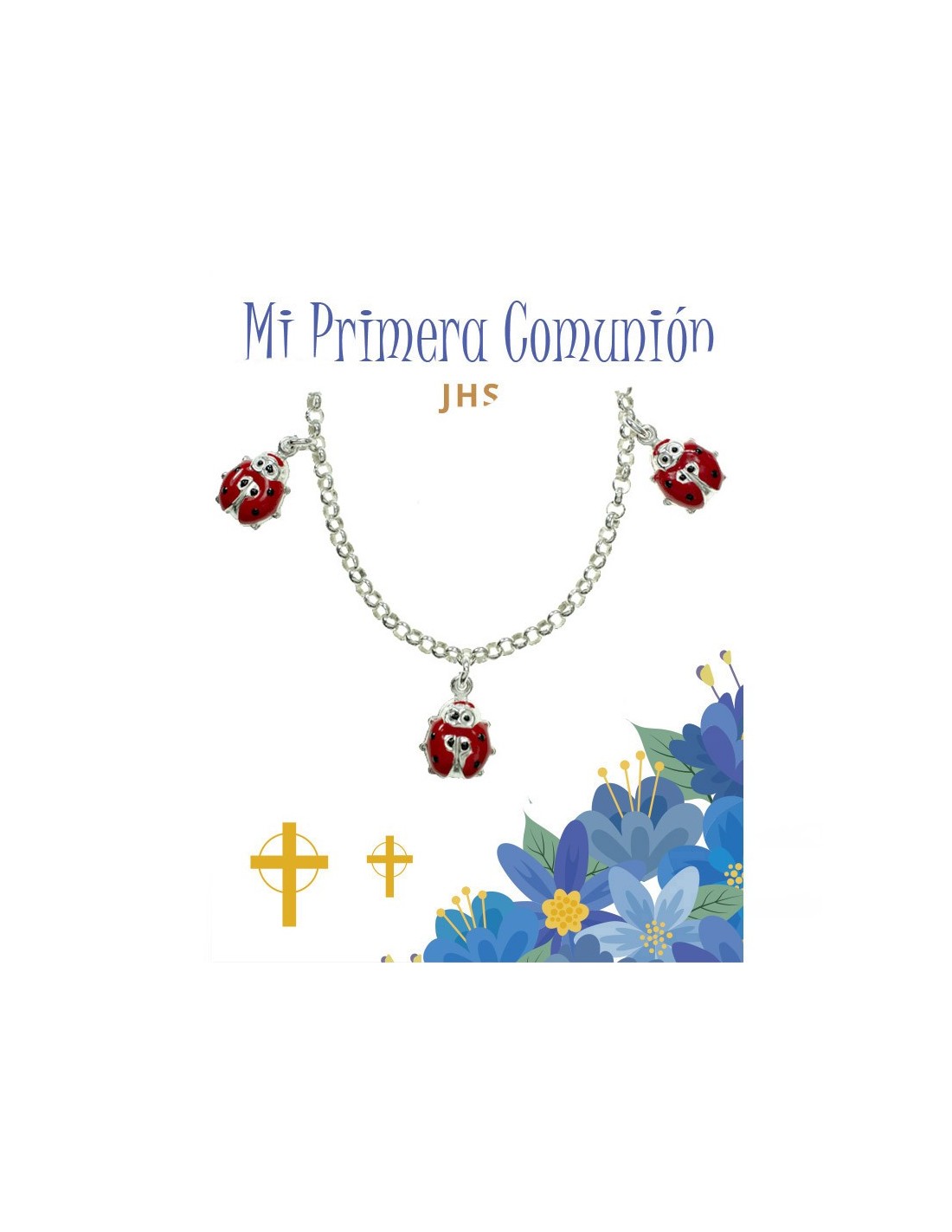 Pulsera mariquitas para niña de Comunión, hecha en Plata de Ley 925.