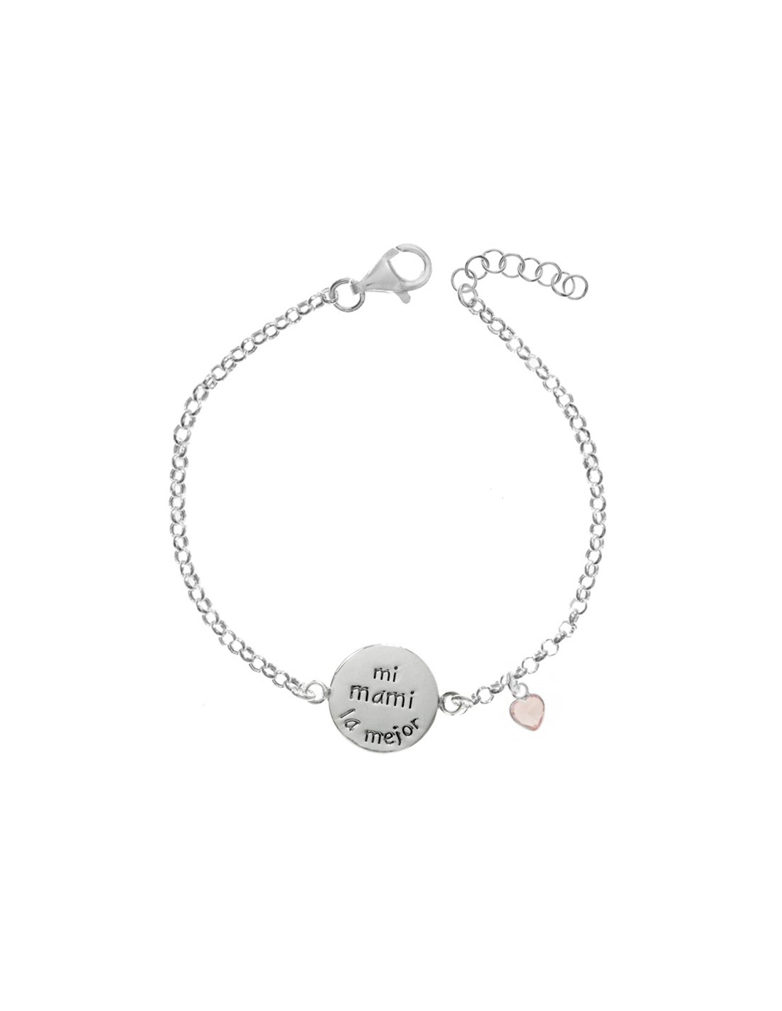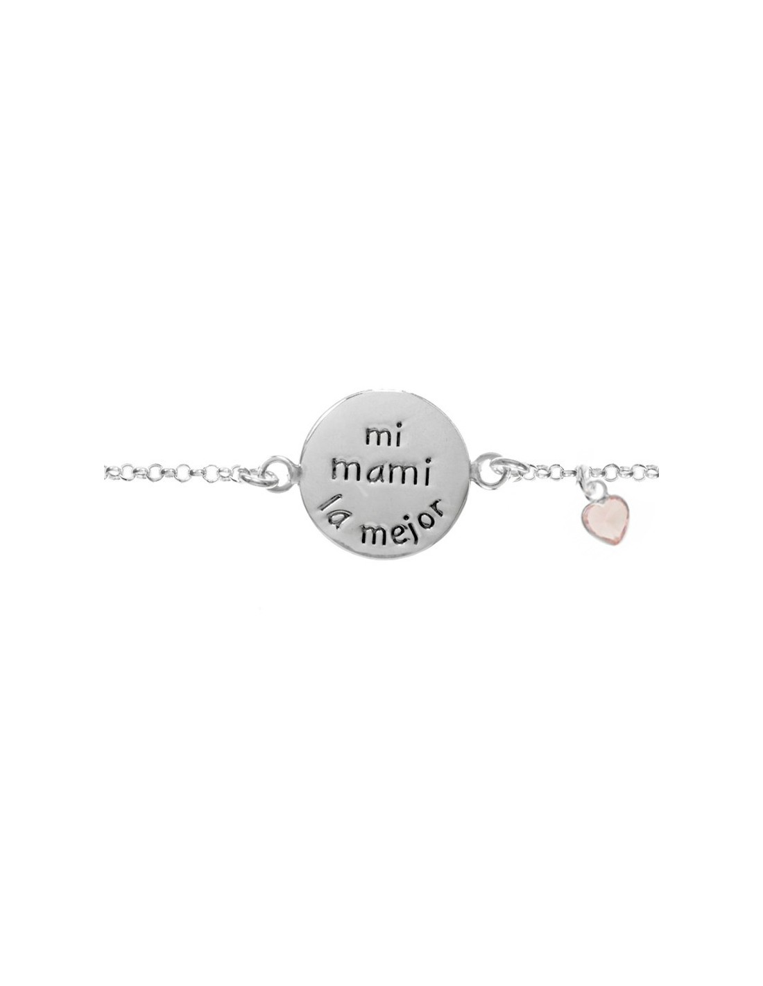 Pulsera chapa redonda con mensaje grabado Mi mami la mejor fabricada en Plata de Ley