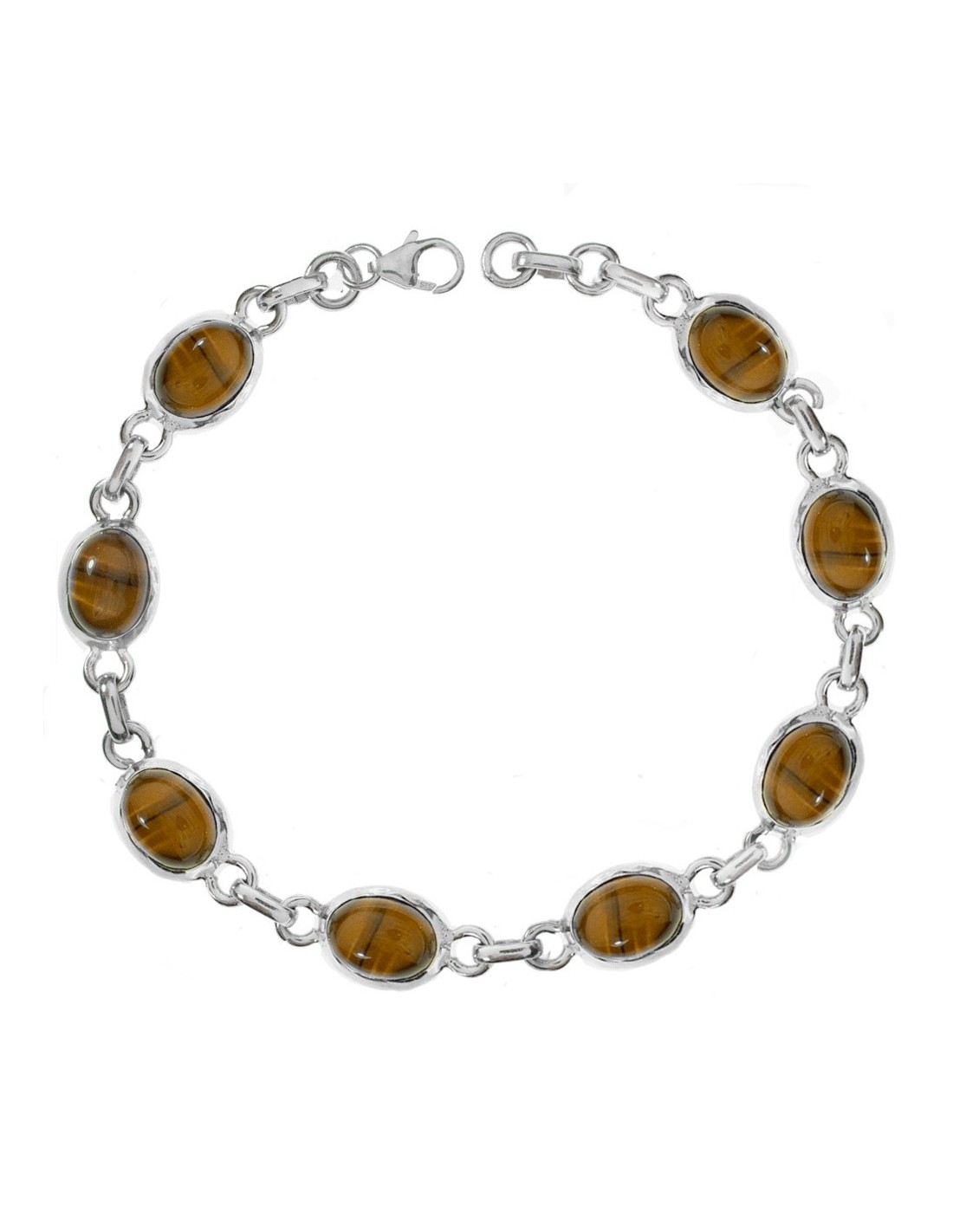 Pulsera ojo de tigre eslabón oval Plata de Ley