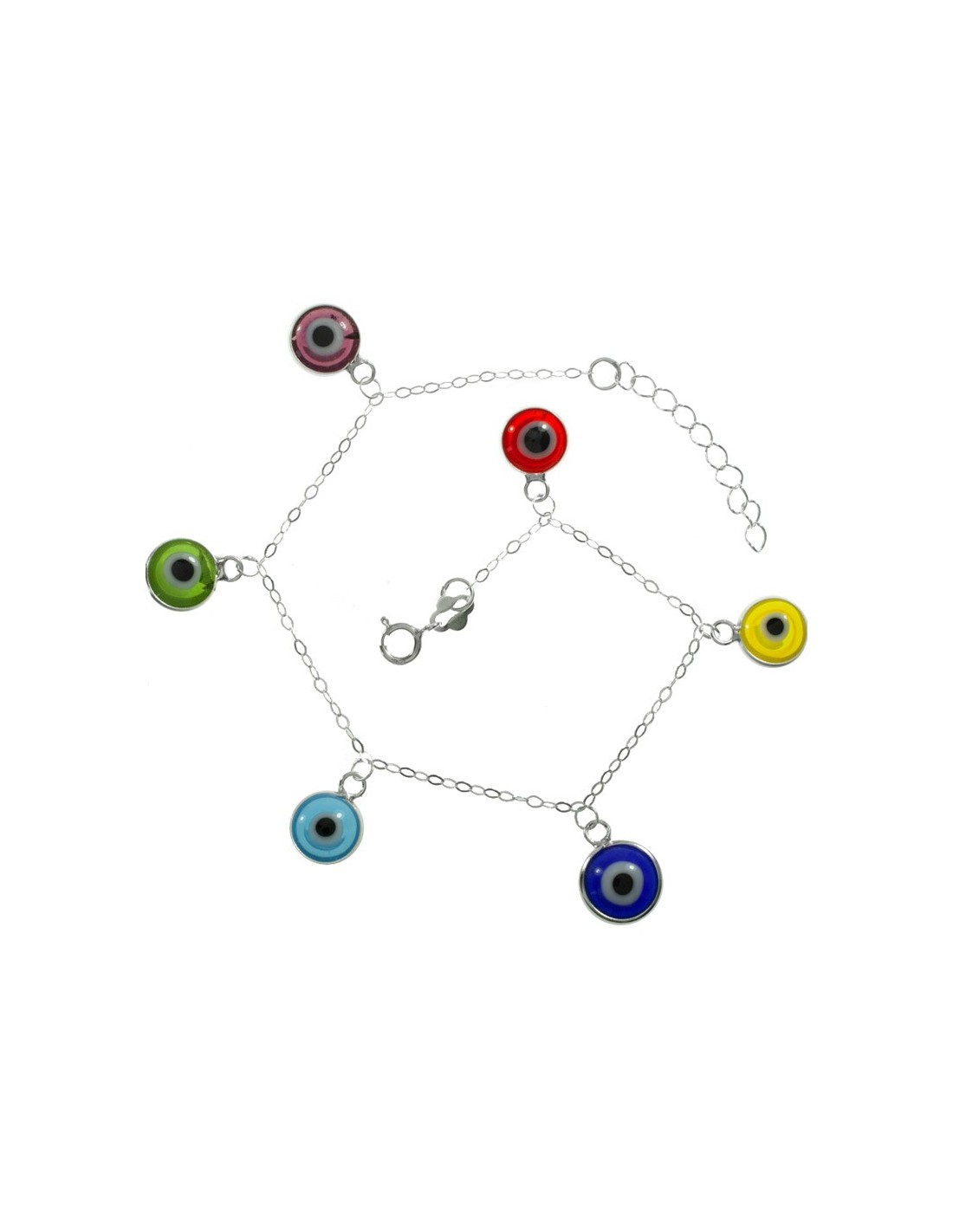 Pulsera ojos turcos colgantes de colores Plata de Ley | Karissma
