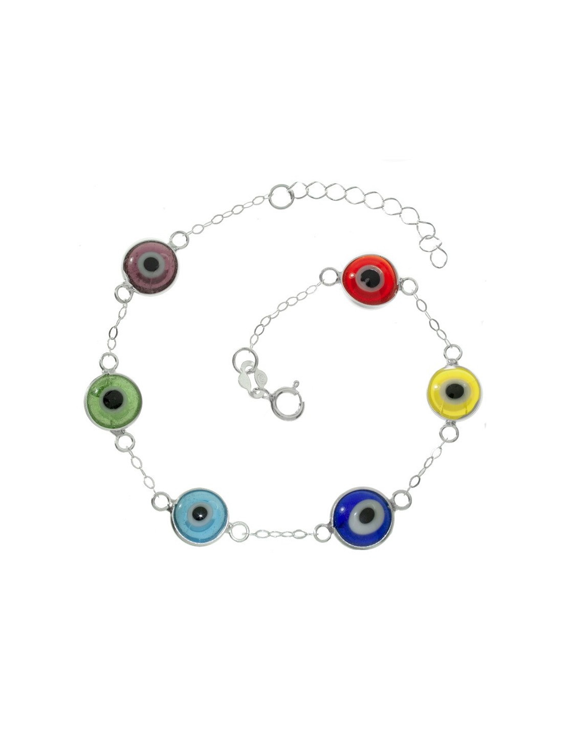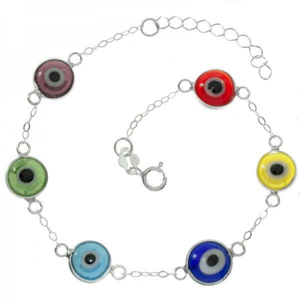 Pulsera ojos turcos de colores Plata de Ley