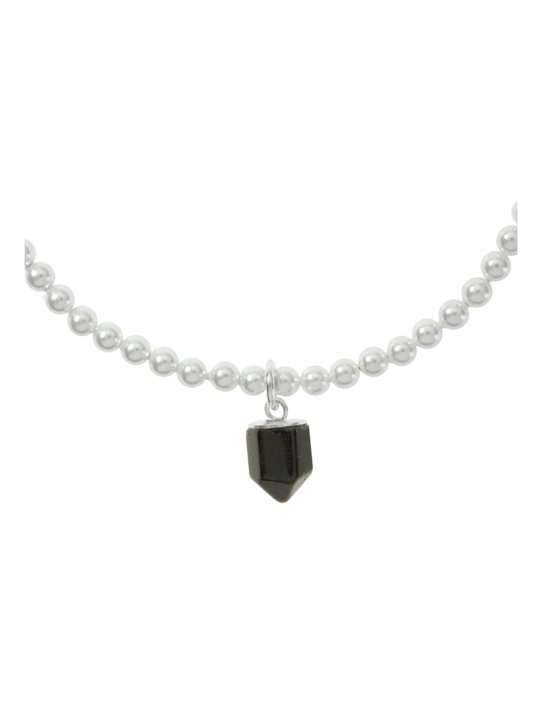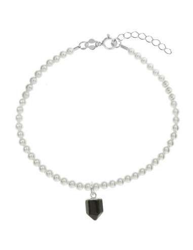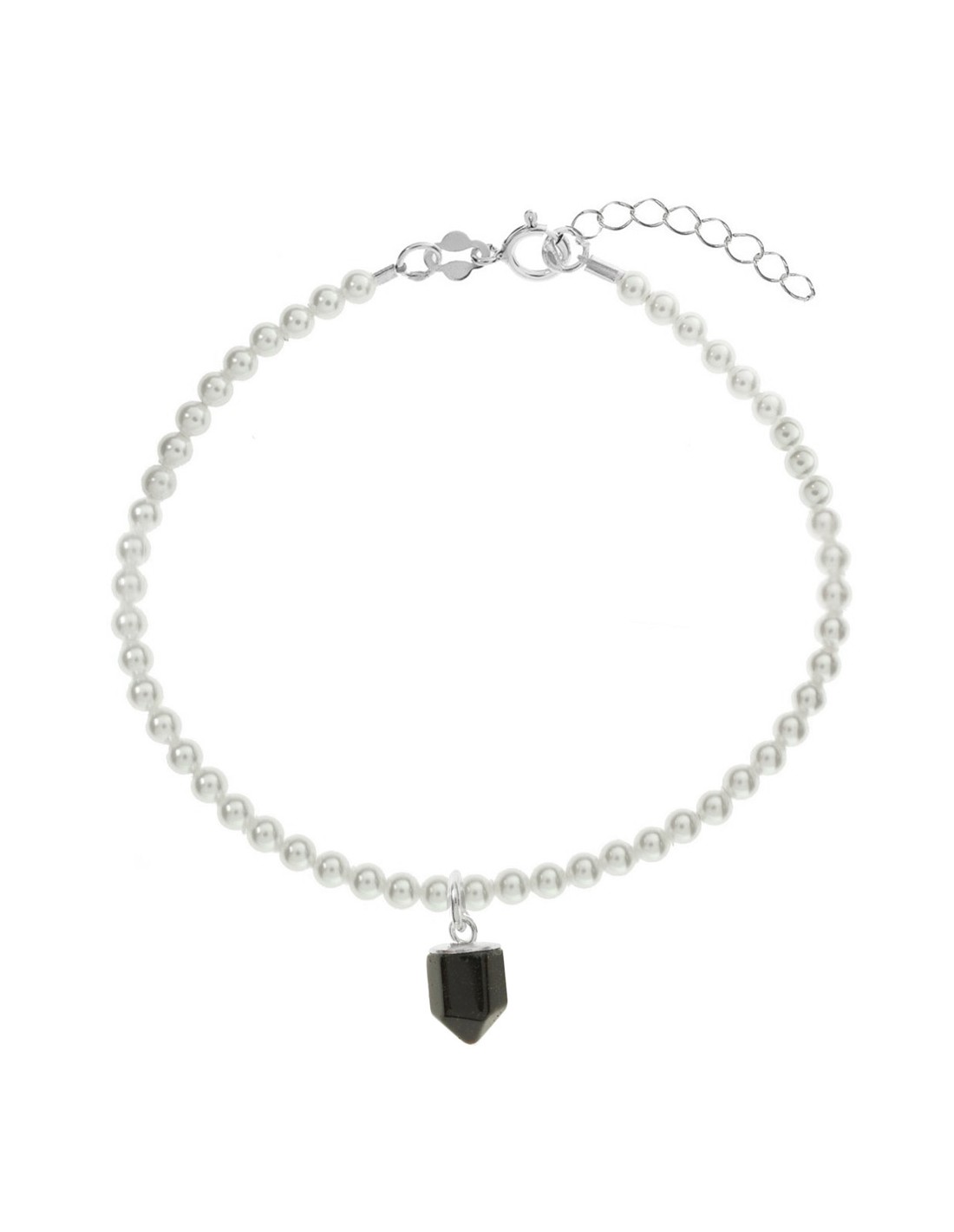 Pulsera perlas 3 mm con péndulo de piedra natural Plata de Ley
