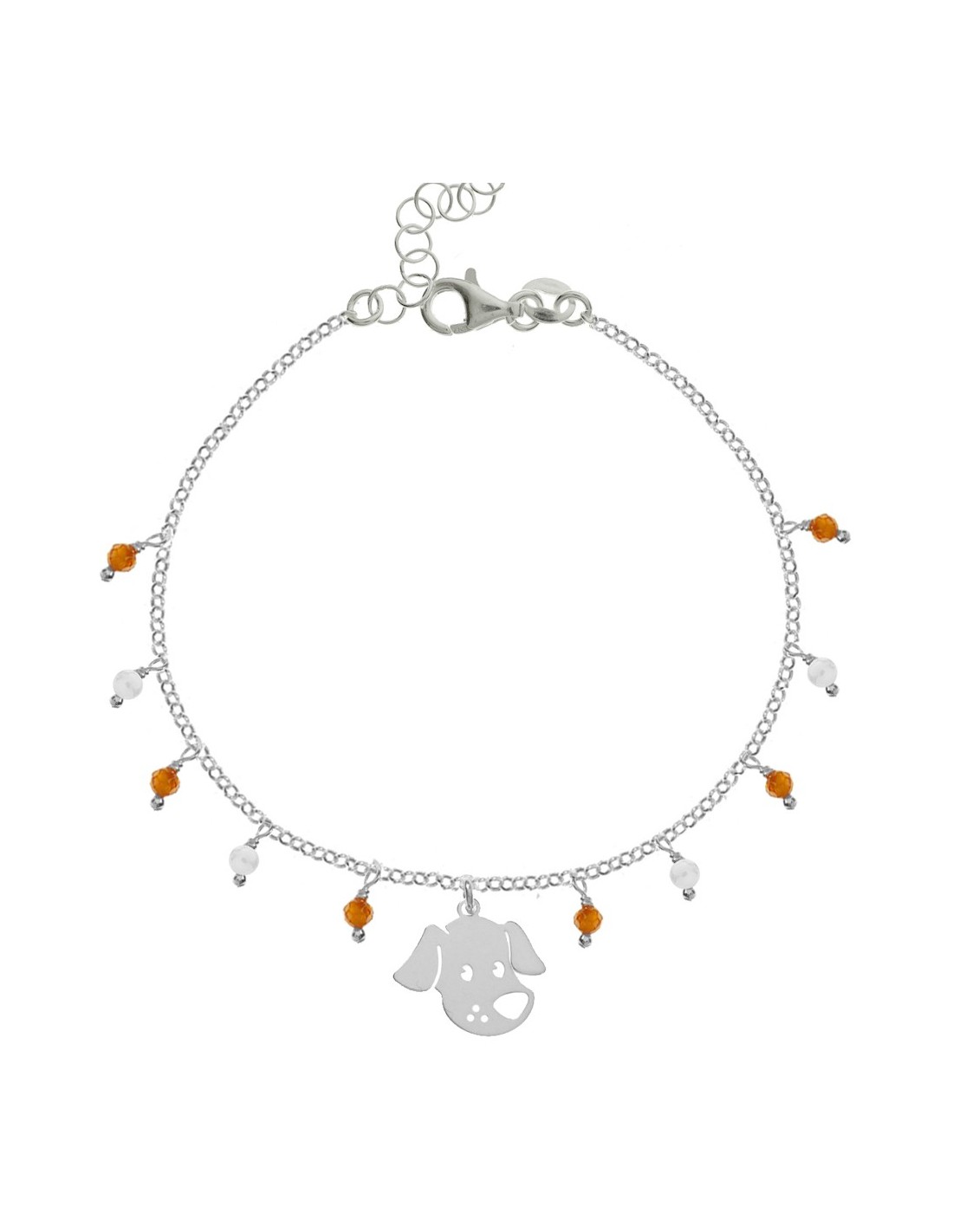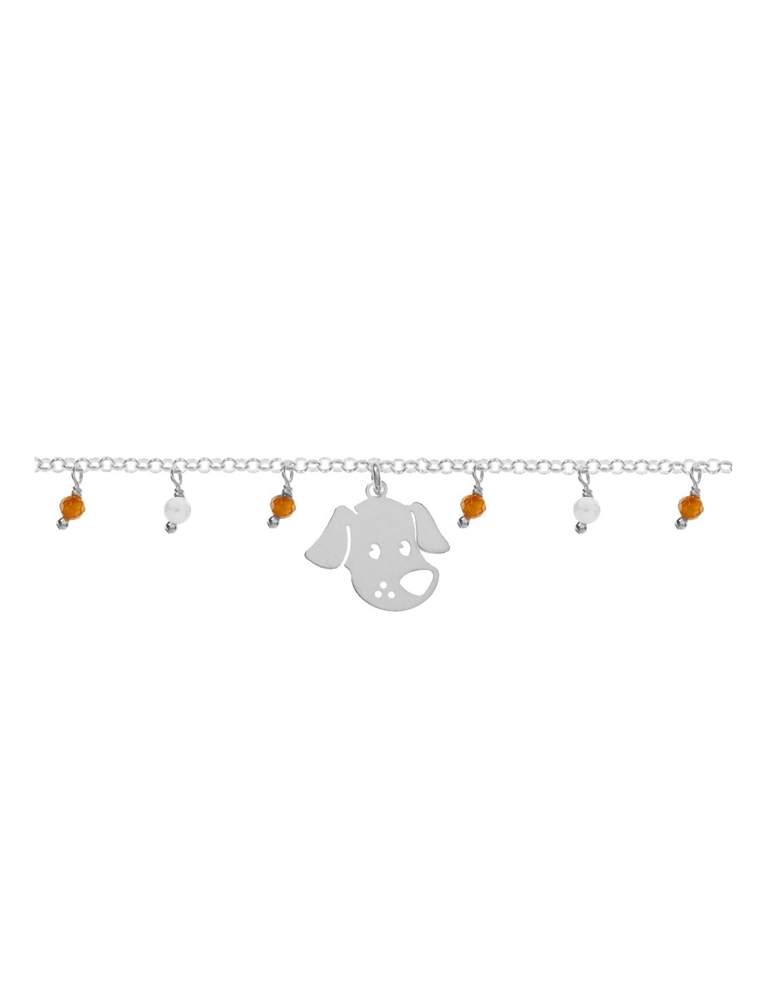 Pulsera con colgante perro y cristalitos facetados fabricada en Plata de Ley