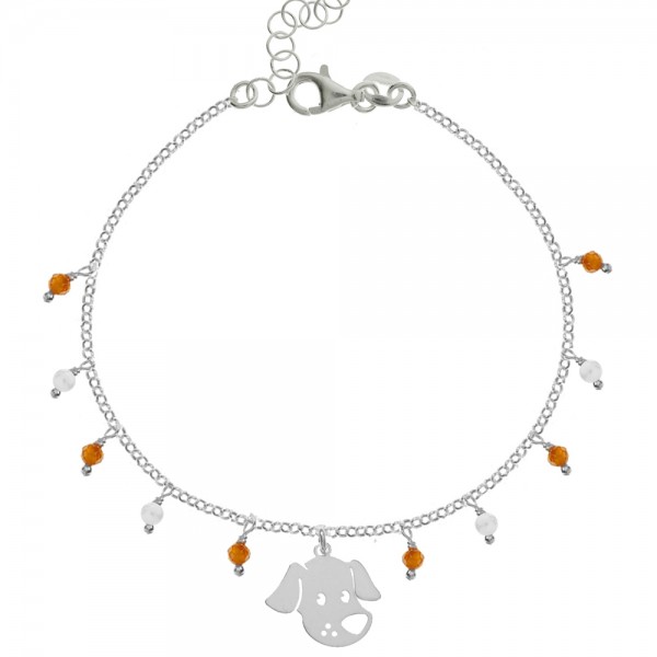 Pulsera con colgante perro y cristalitos facetados fabricada en Plata de Ley