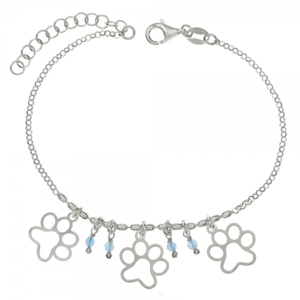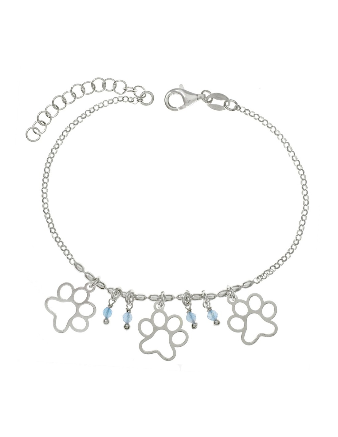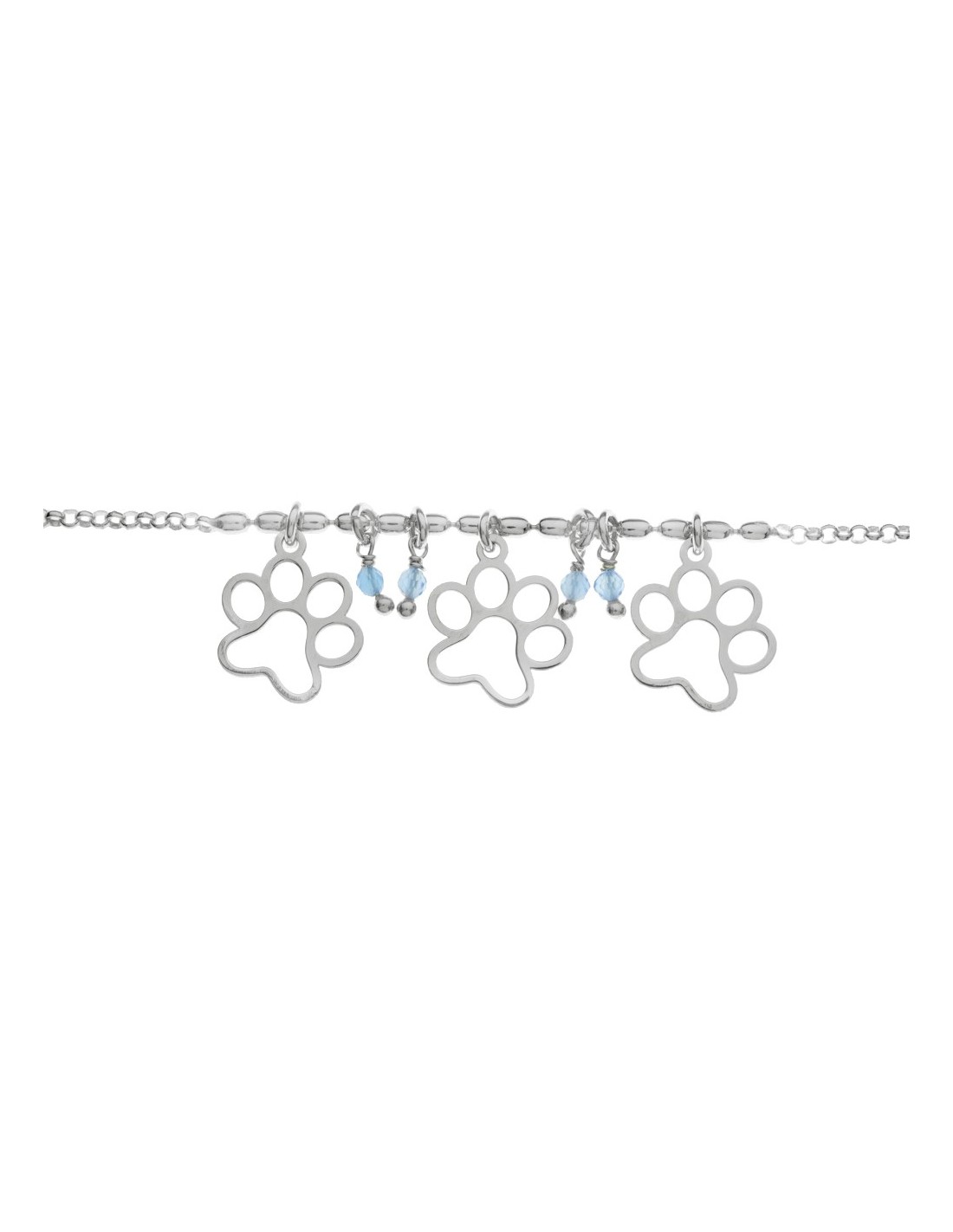 Pulsera con triple huella y cristales azules facetados fabricada en Plata de Ley rodiada