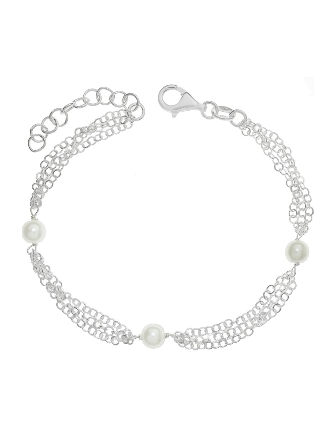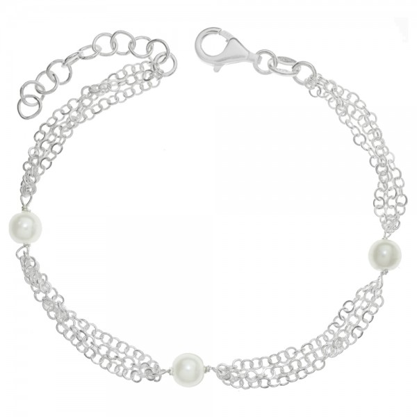 Pulsera triple vuelta con tres perlas Plata de Ley