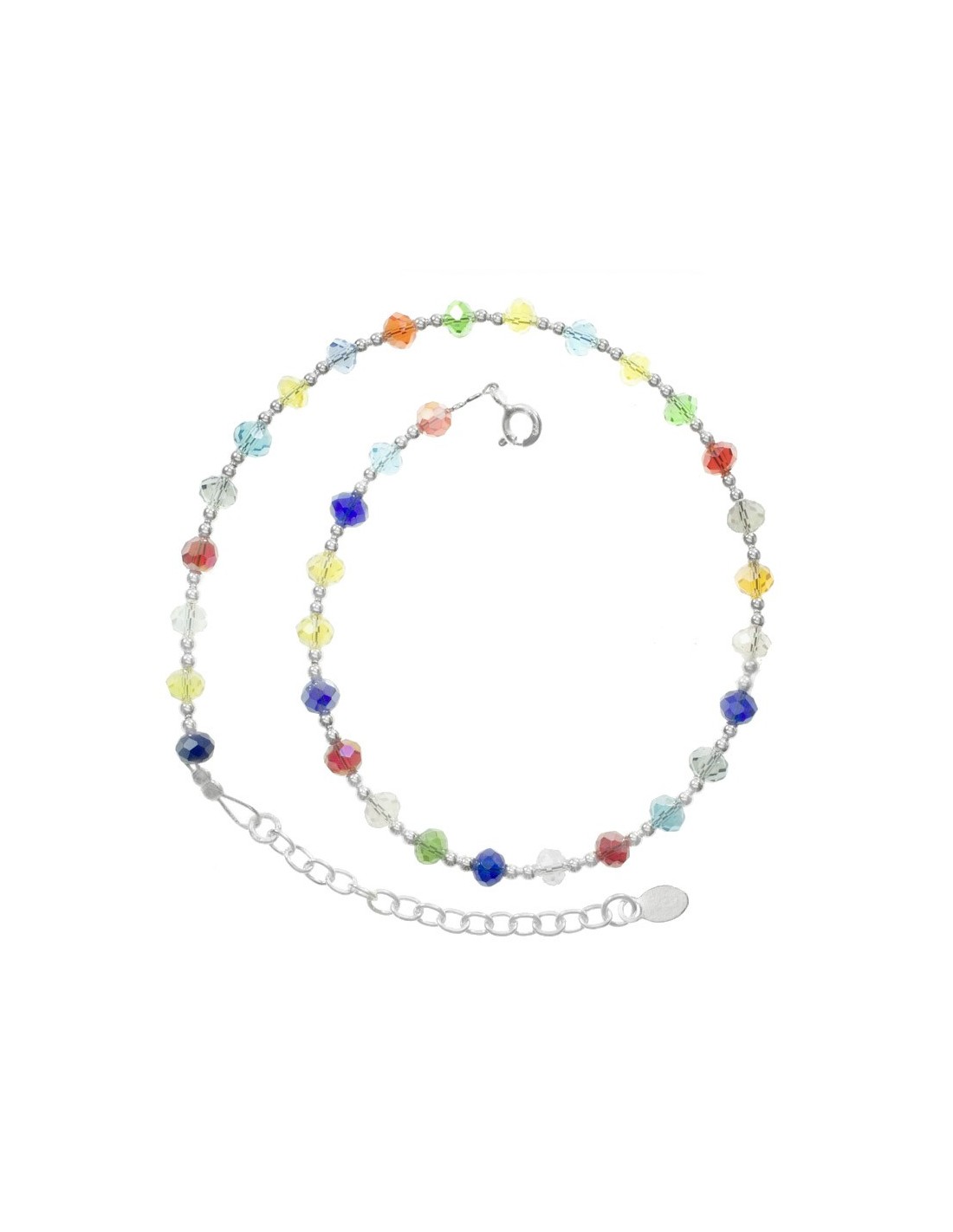 Tobillera con cristales checos de colores Plata de Ley | Karissma